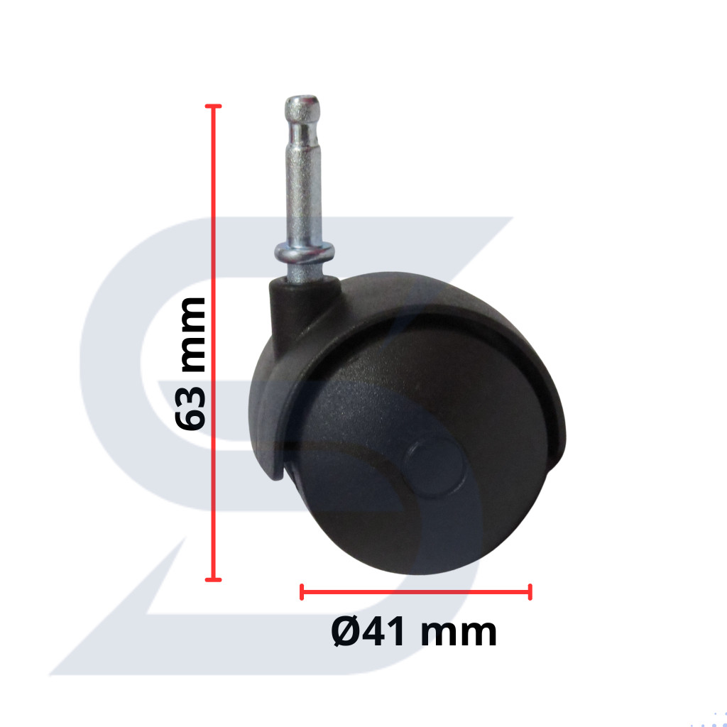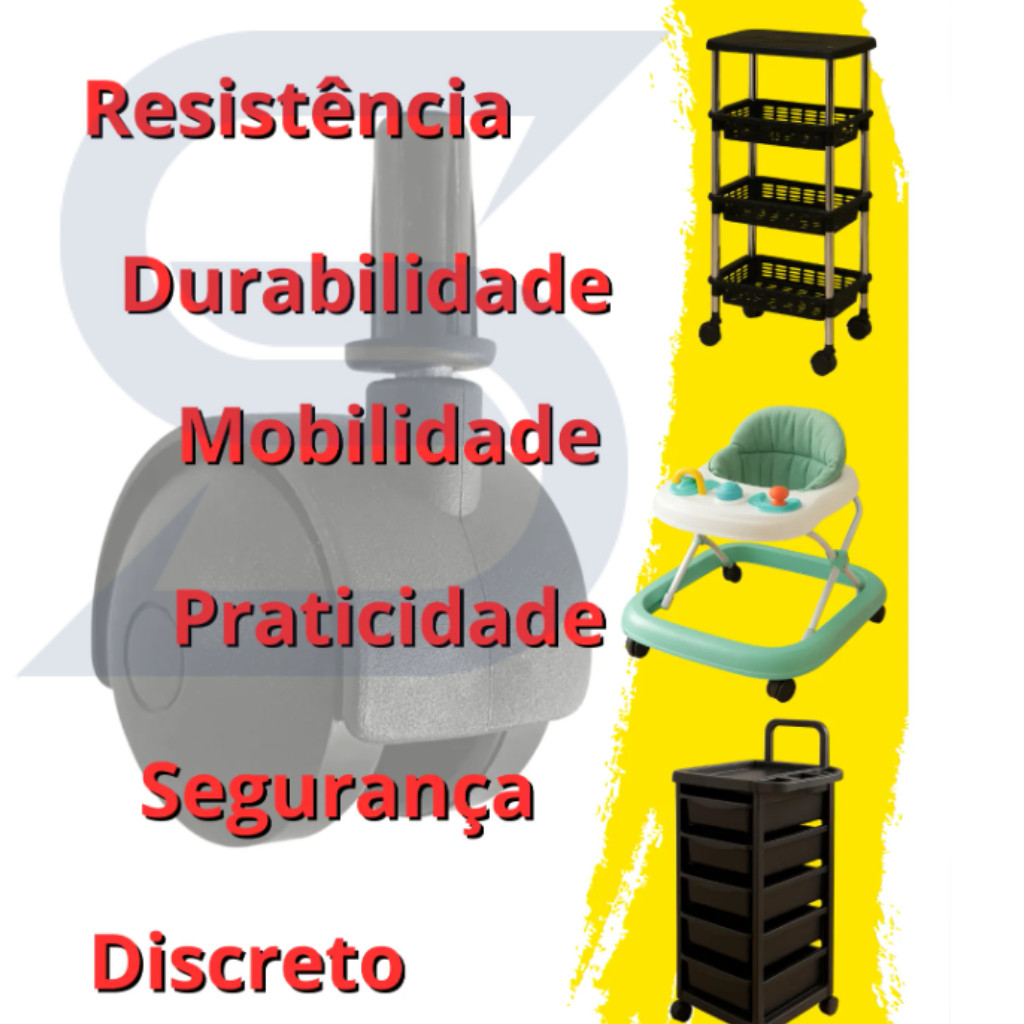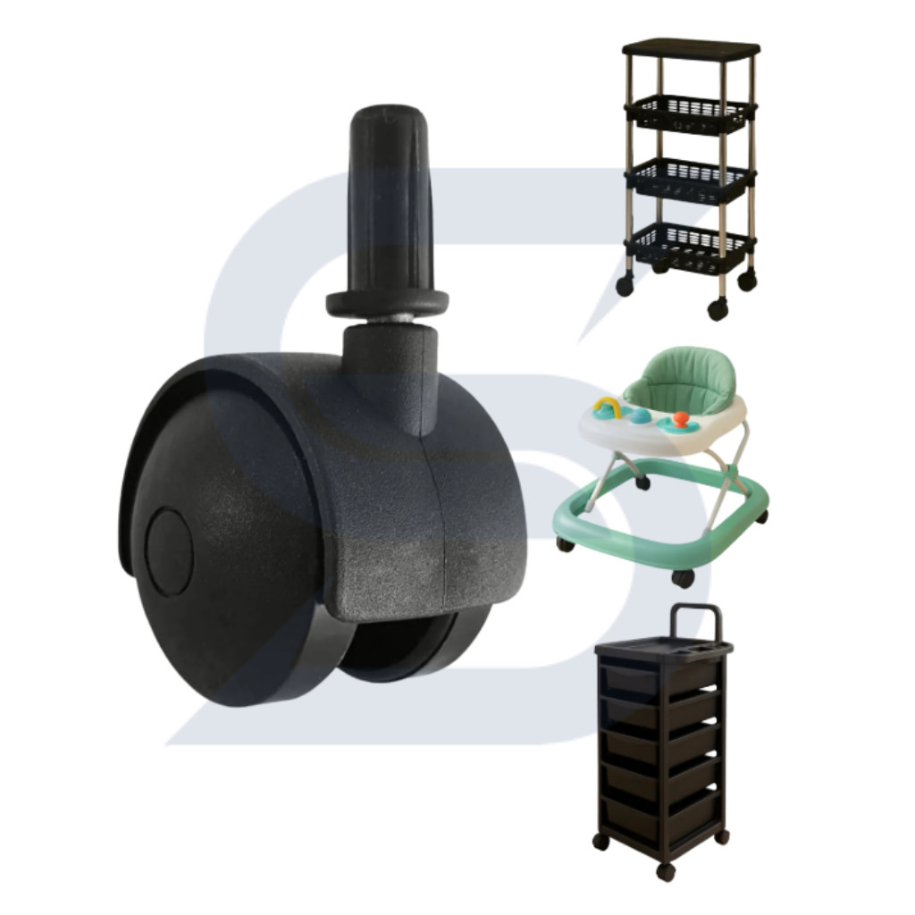 Rodinhas Giratórias para Móveis 40mm Pino 6mm Preto