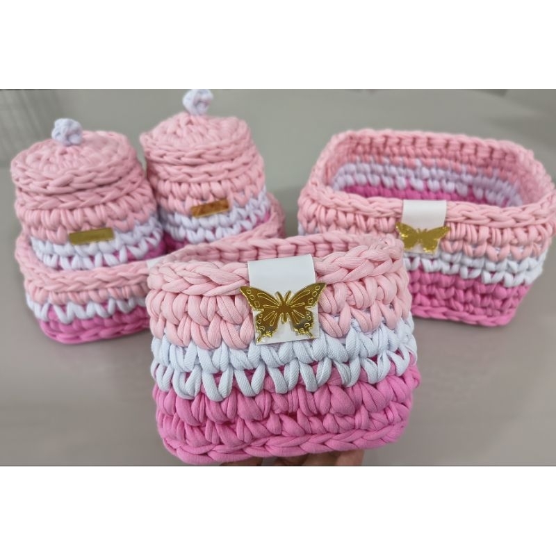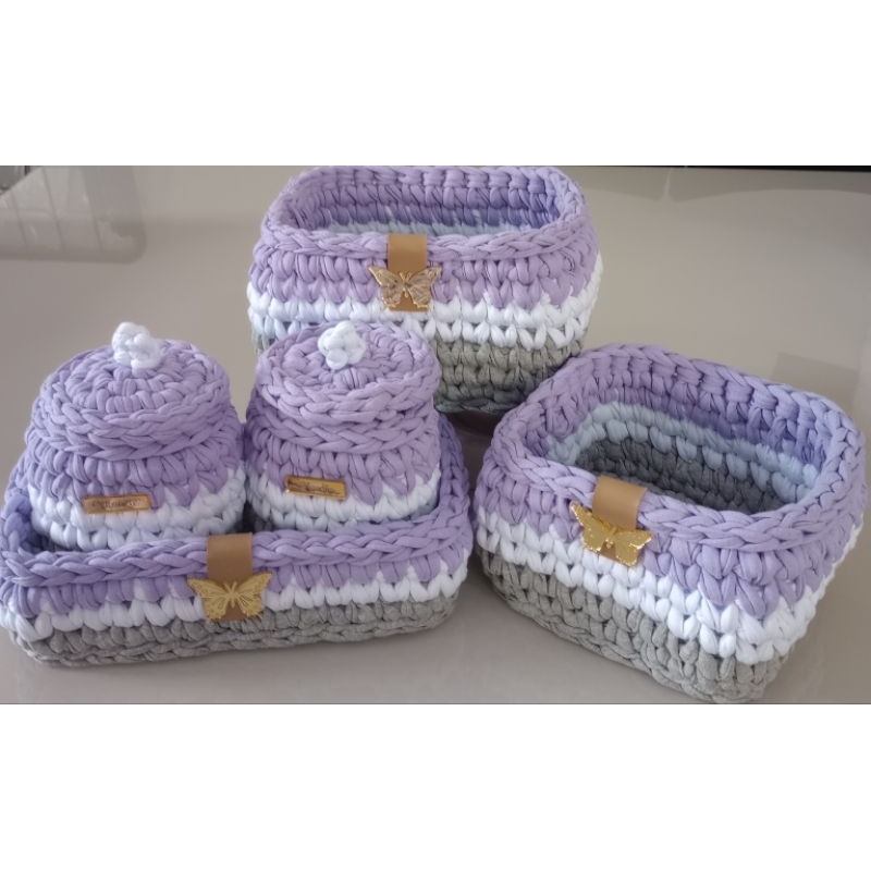 Kit higiene para bebê em fio de malha.
