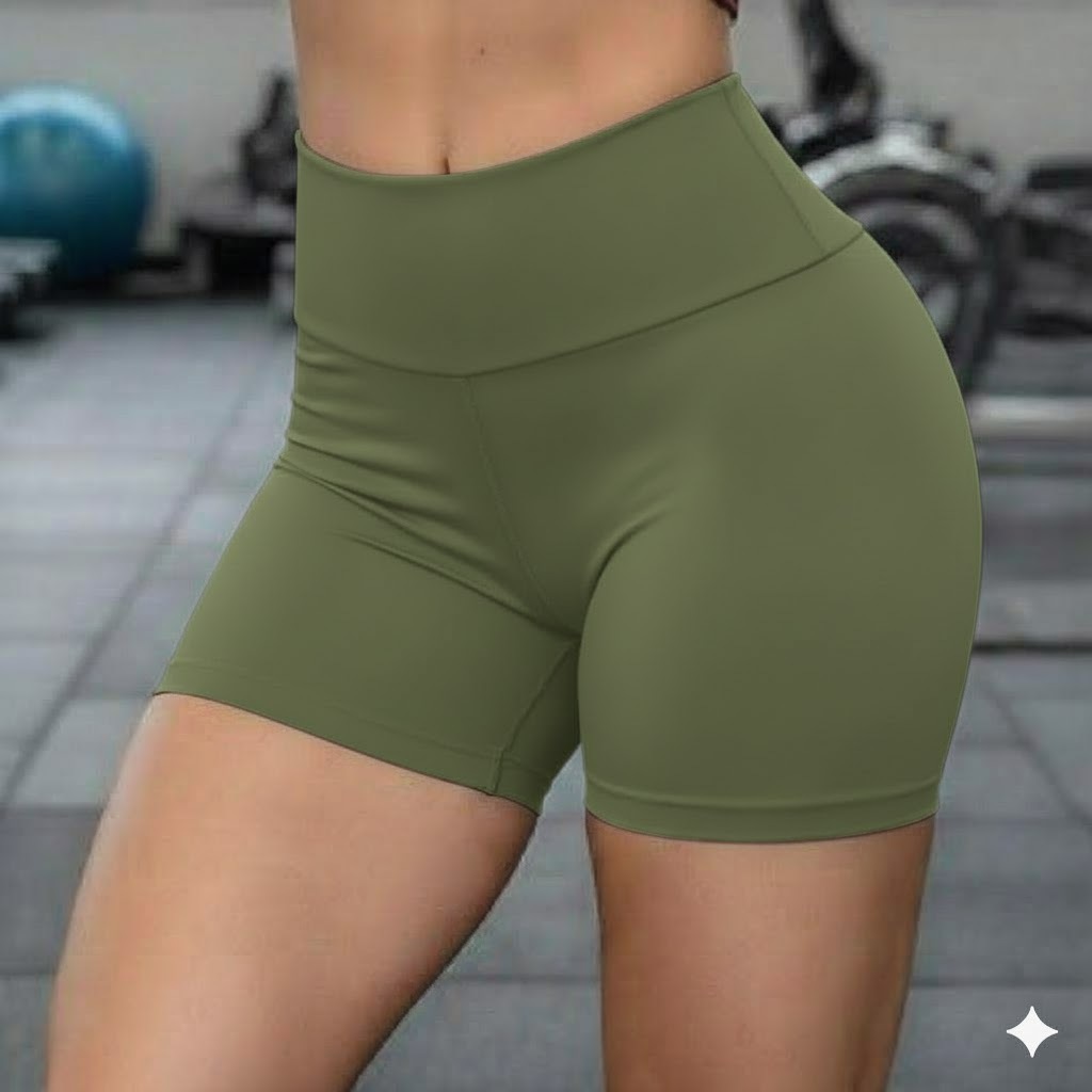 Short Fitness Feminino Academia Cós Alto Suplex Premium Zero Transparência Legging Curta