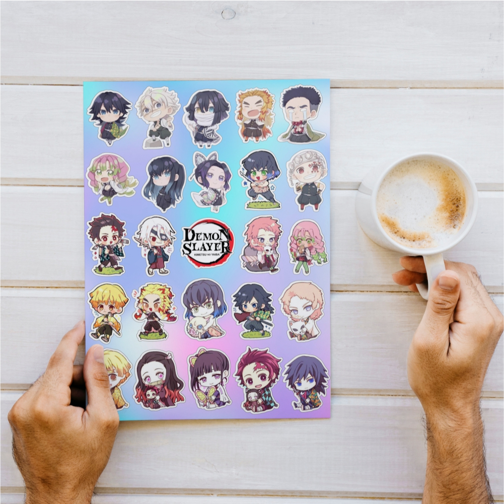 Cartela de Adesivos Sticker A4 Kimetsu no Yaiba Demon Slayer Chibi