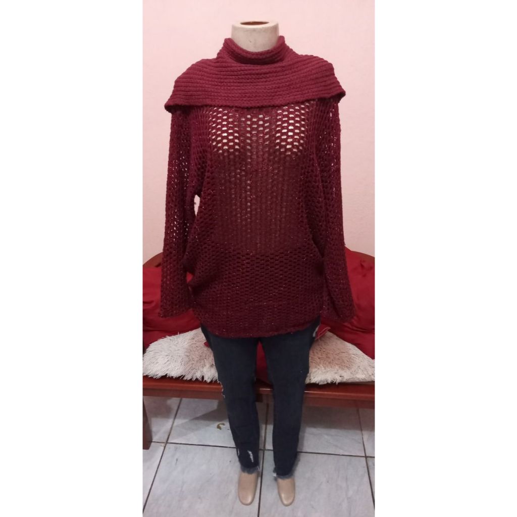 xale feminino Tricot/Crochê feito á mão - moda feminina outono inverno