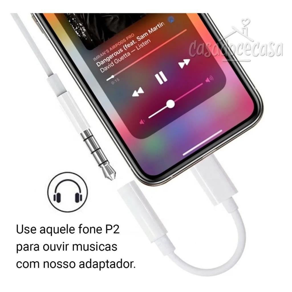 Cabo Adaptador P2 Audio Fone Para iPhone 7 8 Xr 11 Pro Max