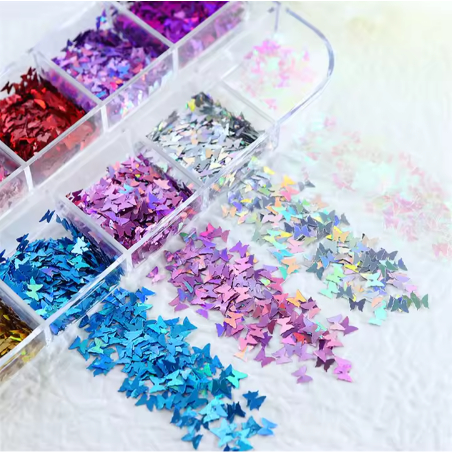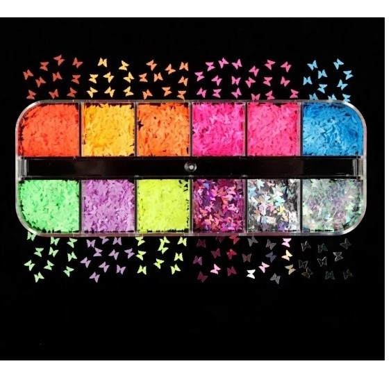 Kit 12 Potinhos Glitter Borboleta Unhas Decoração Porcelana