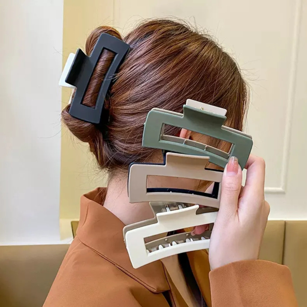 KIT 2 Piranha Garra Cabelo Presilha Grande Prendedor Plástico Formato Quadrado Minimalista Feminino Evamia