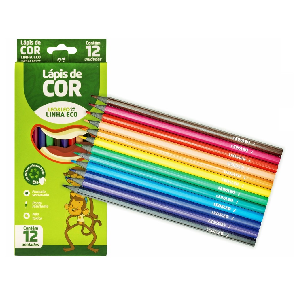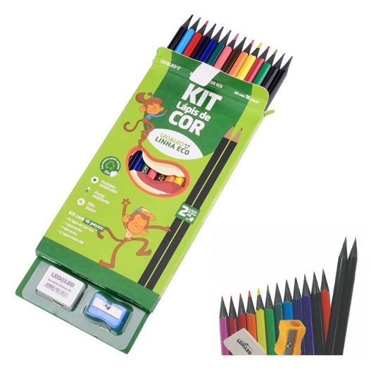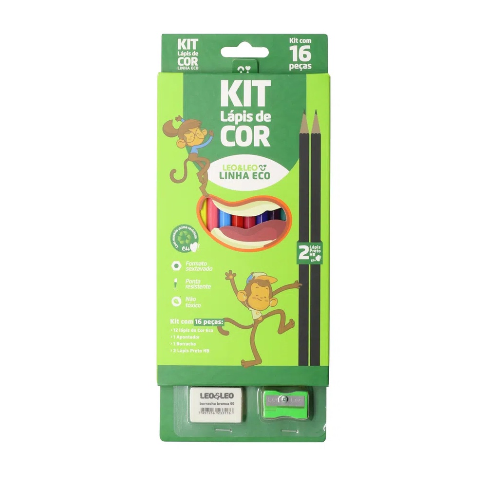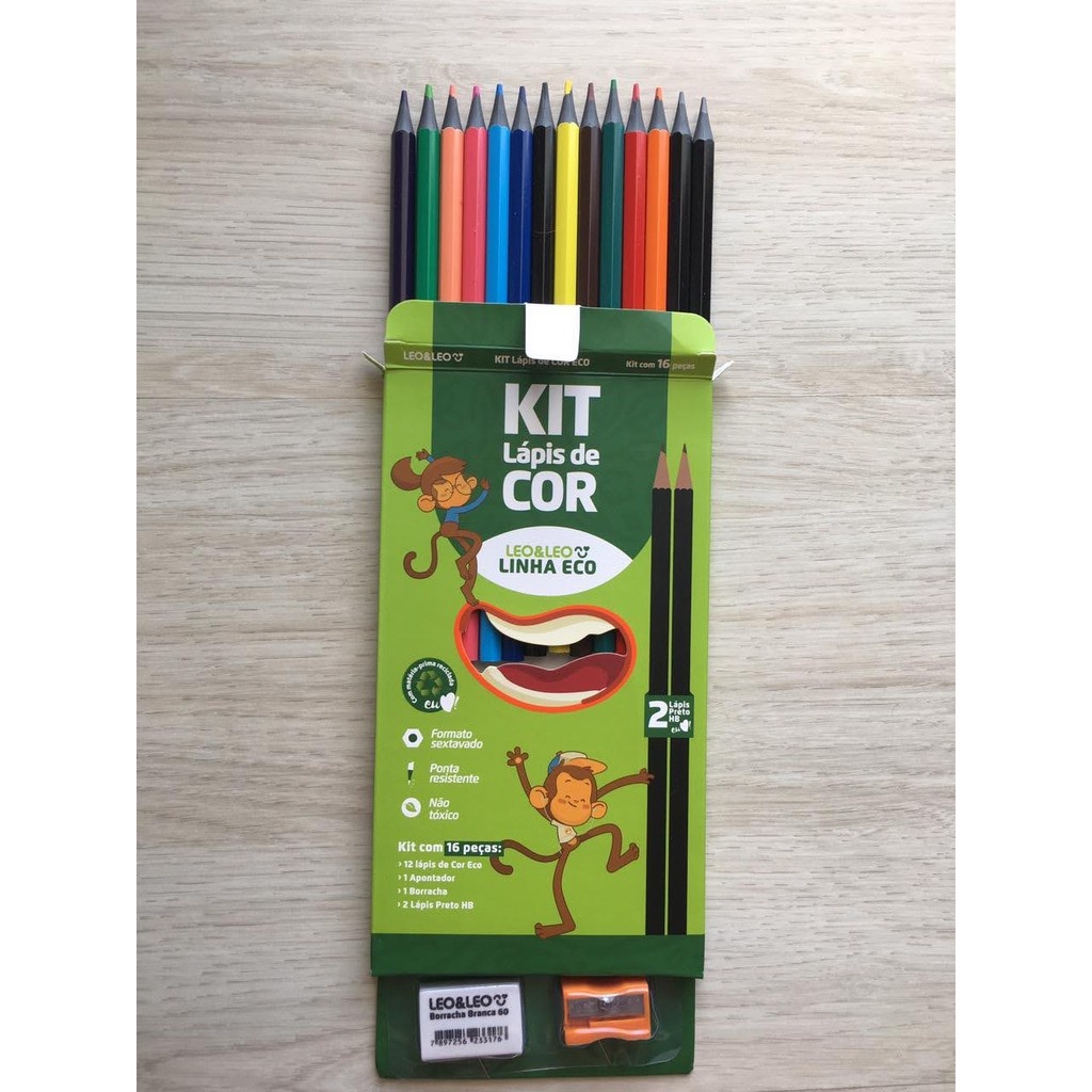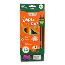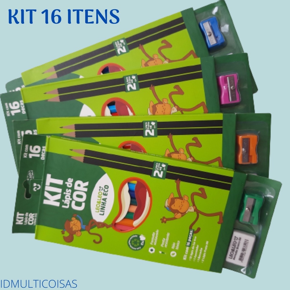 Kit Escolar 12 Lapis De Cor +1 Borracha + 1 Apontador + 2 Lápis Leo & Leo 16 Unidades- Volta As Aulas