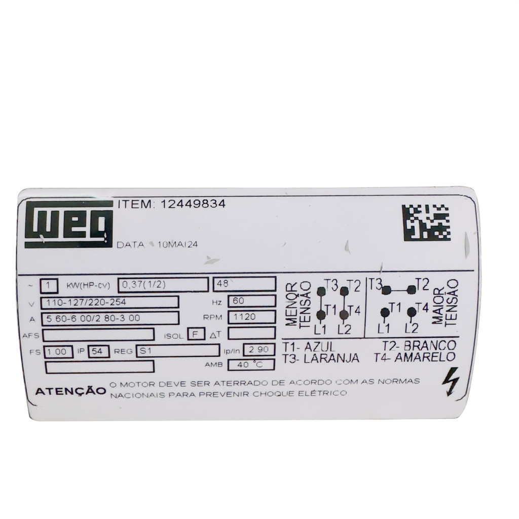 Motor Weg Para Aviário 1/2 Cv Baixa Rotação Monofásico 110v/220v