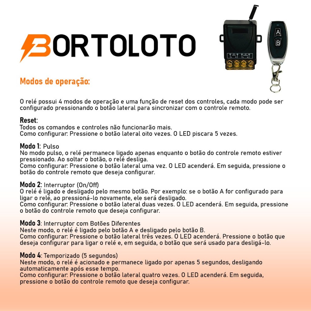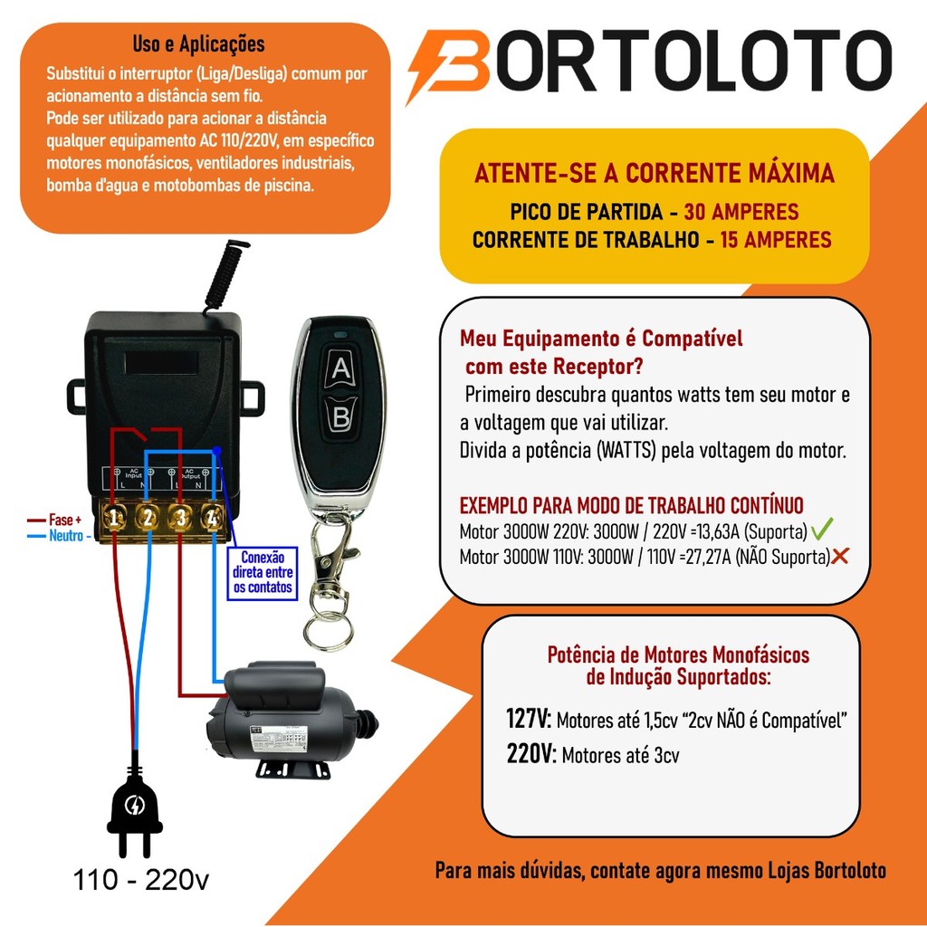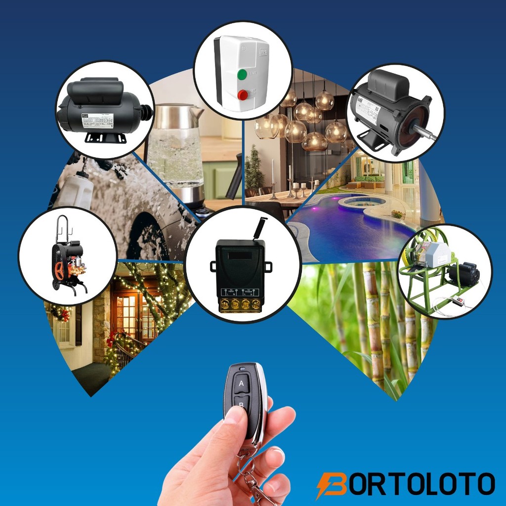 Interruptor Controle Remoto Motor Bomba Módulo Relê 433hz AC 110v 220v 30a Cabo de Energia e Plugue