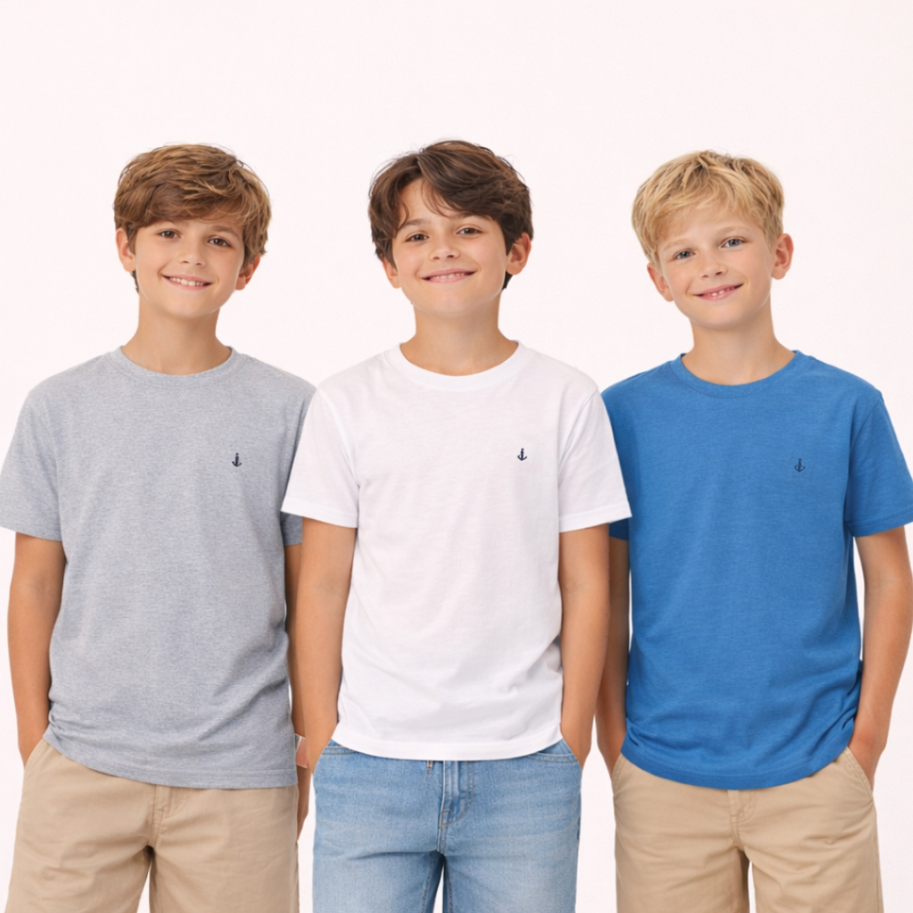 Camiseta Infantil Básica Lisa Menino Verde Mescla Preto Branca KING & JOE