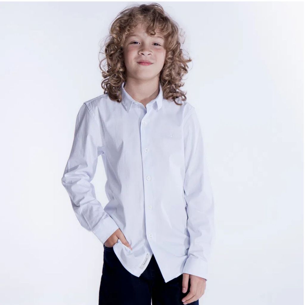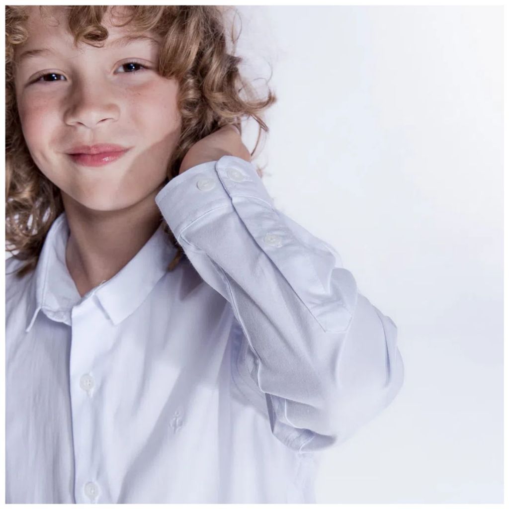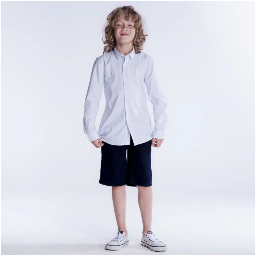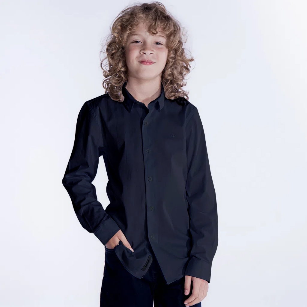 Camisa Infantil Manga Comprida Branca Preto Marinho Tricoline Menino Festa Casamento Formatura