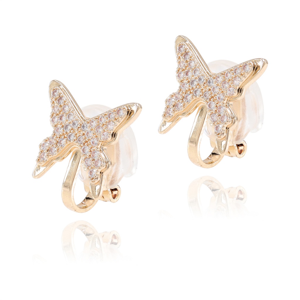 Brincos Strass pressão Luxo Folheado Presente Luxo/coração/borboleta/coruja Clipe de orelha Sem /piercing na orelha