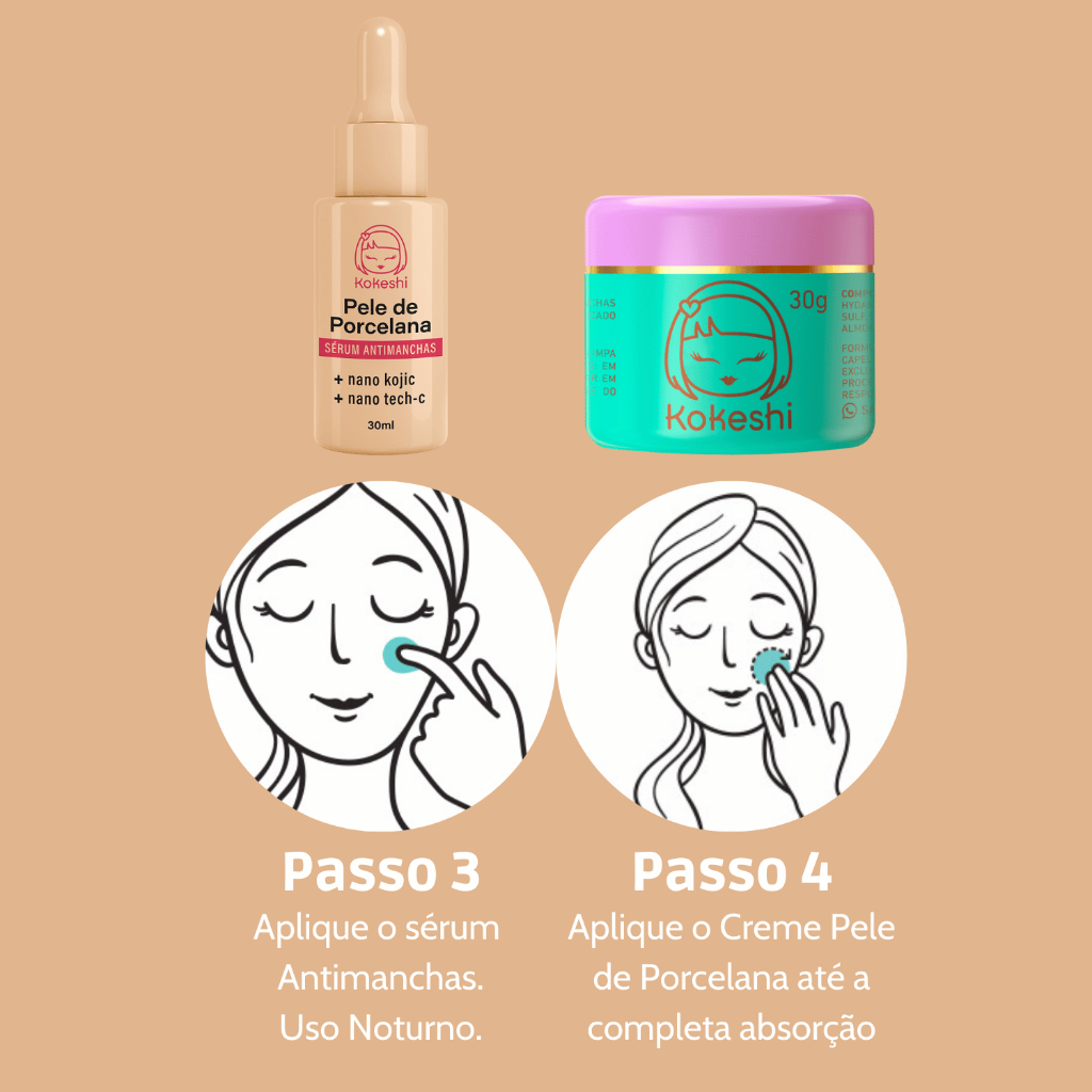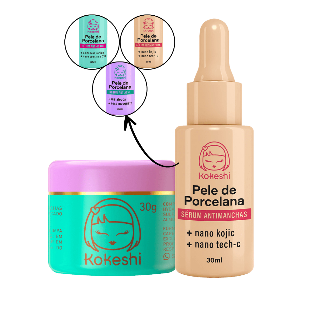 Kit Pele de porcelana Máscara e Tônico Escolha entre Antiacne Antimanchas e Anti-idade