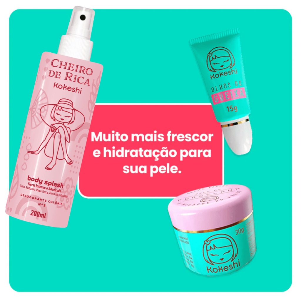 Kit Kokeshi Frescor Hidratação Perfumação Pele de Porcelana Olhos Gueixa Cheiro Rica N3 Adocicado