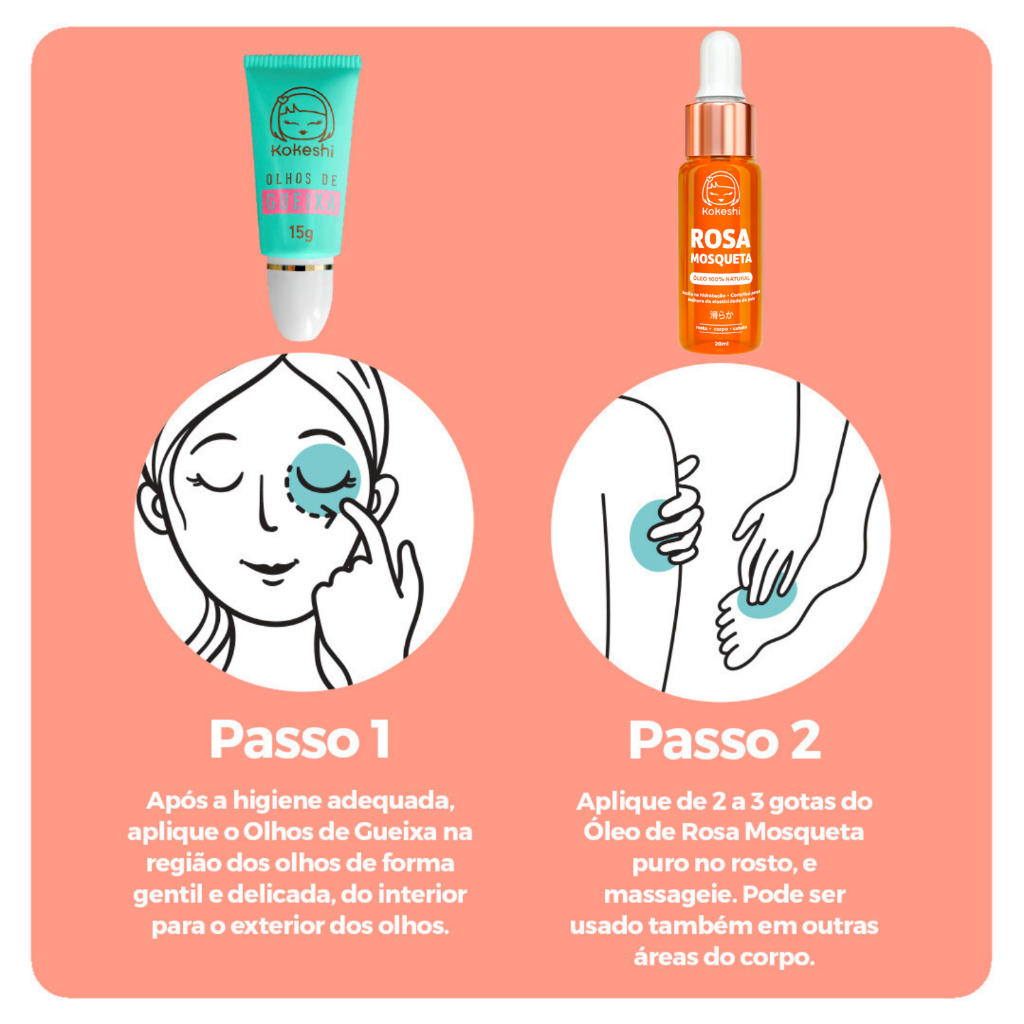 Kit Kokeshi Olhos de Gueixa e Óleo de Rosa Mosqueta Natural com Hidratação Intensa