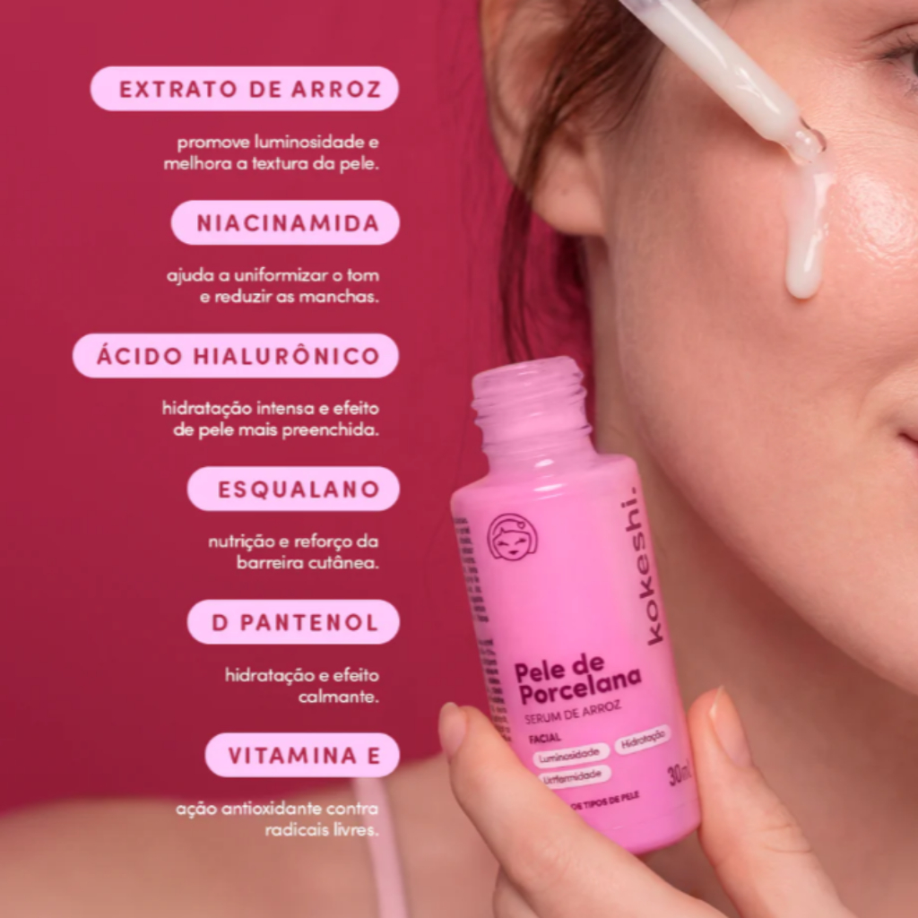 Kit Pele de Porcelana com Sérum de Arroz e Olhos de Gueixa Kokeshi