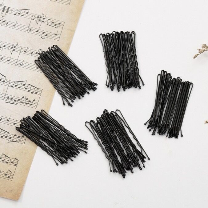 Kit 24 Conjuntos Grampo de Cabelo Preto Invisível / Presilha Ondulada Feminina para Bob / Grampos para Salão