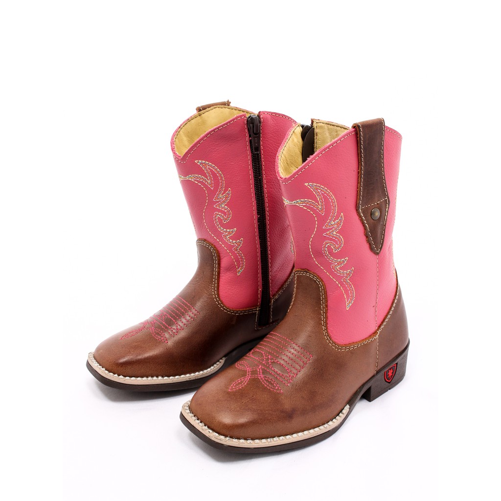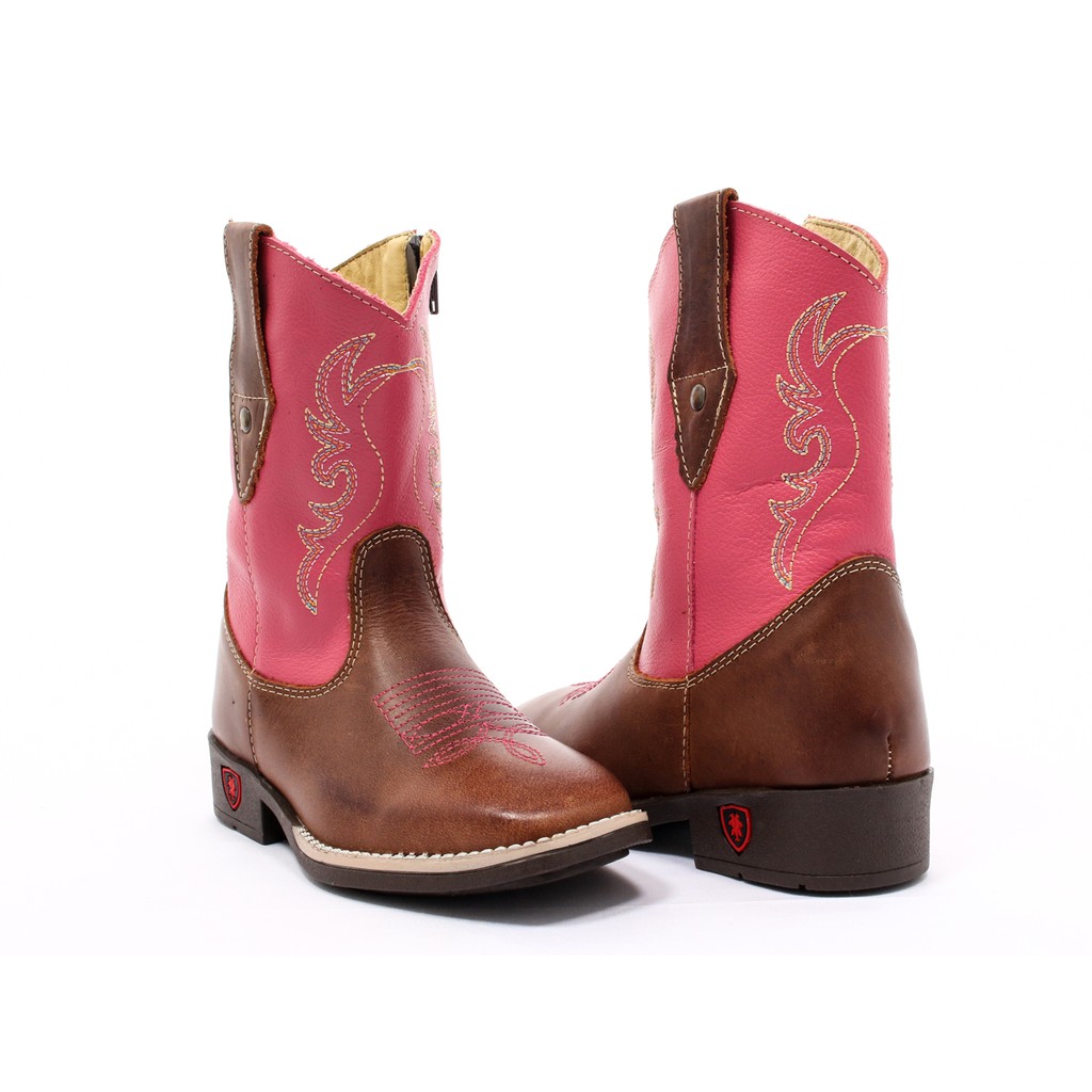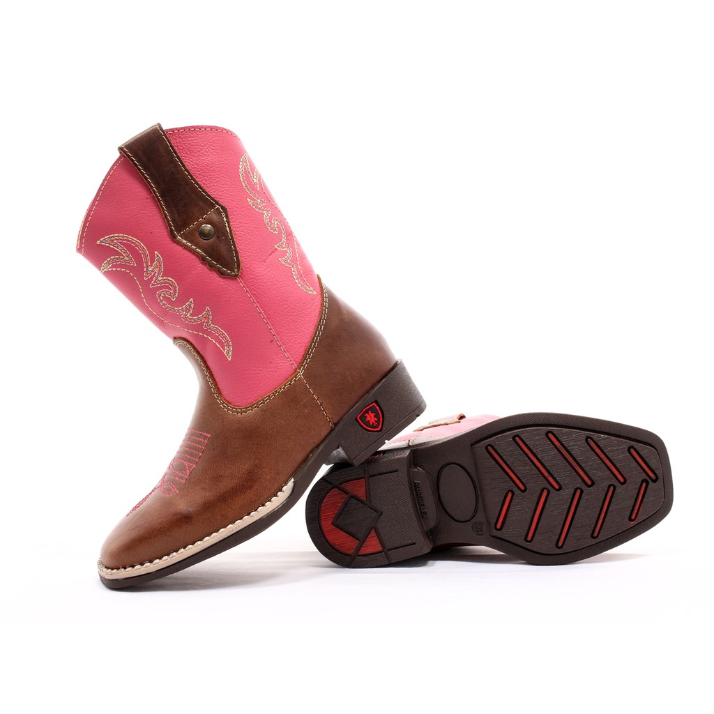 Bota Country Texana Infantil Couro .296 Marrom/Rosa