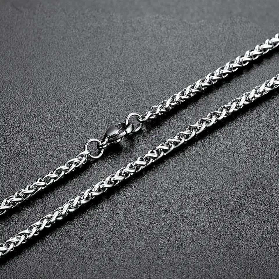 Colar cordão trançado aço inox legítimo prata masculino