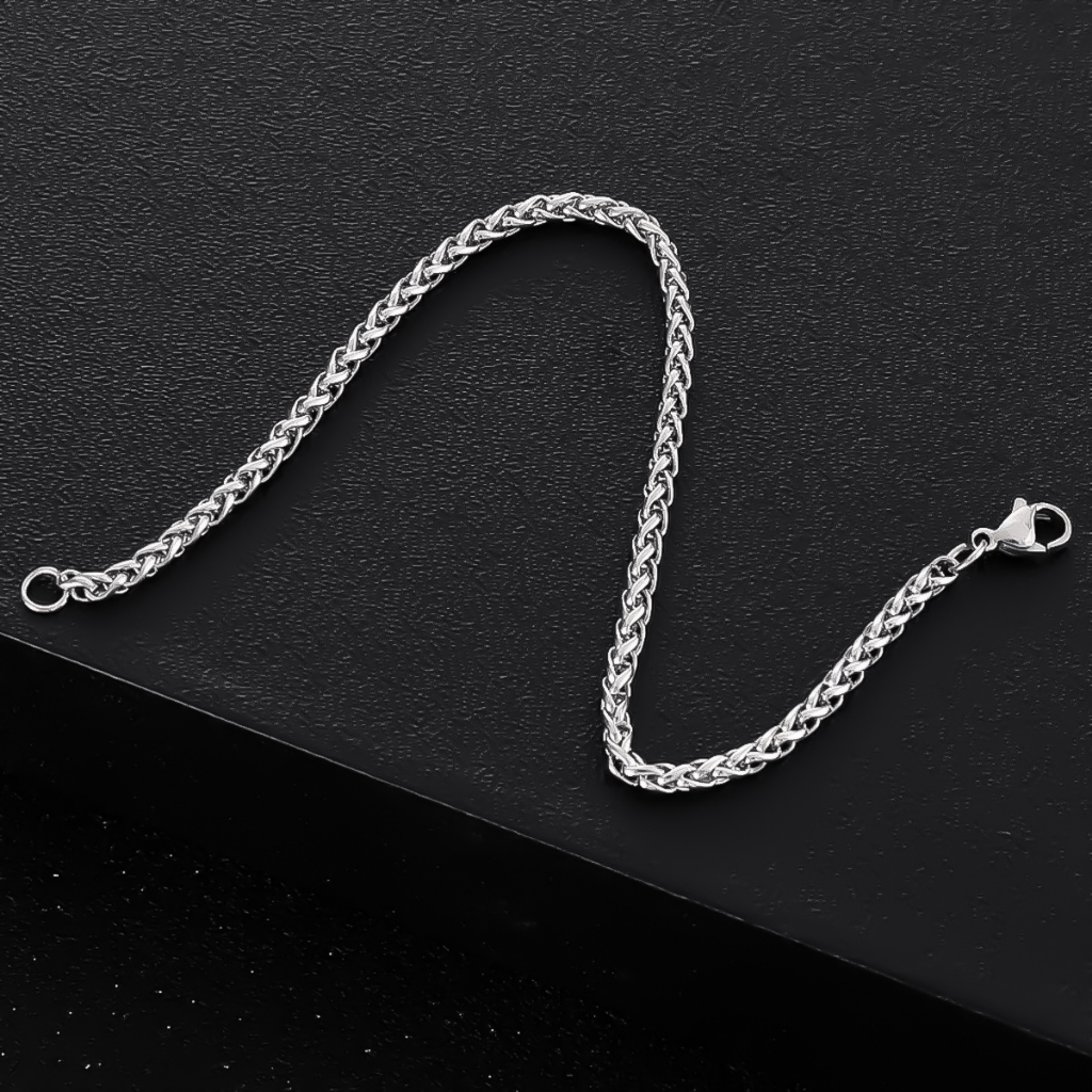 Pulseira cordão trançado aço inox legítimo prata masculino