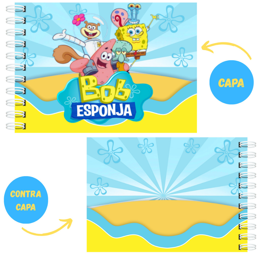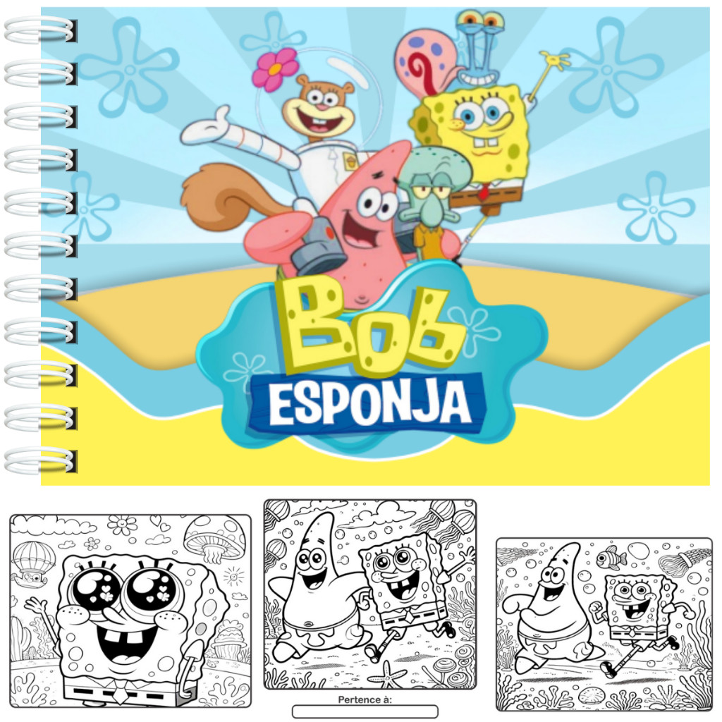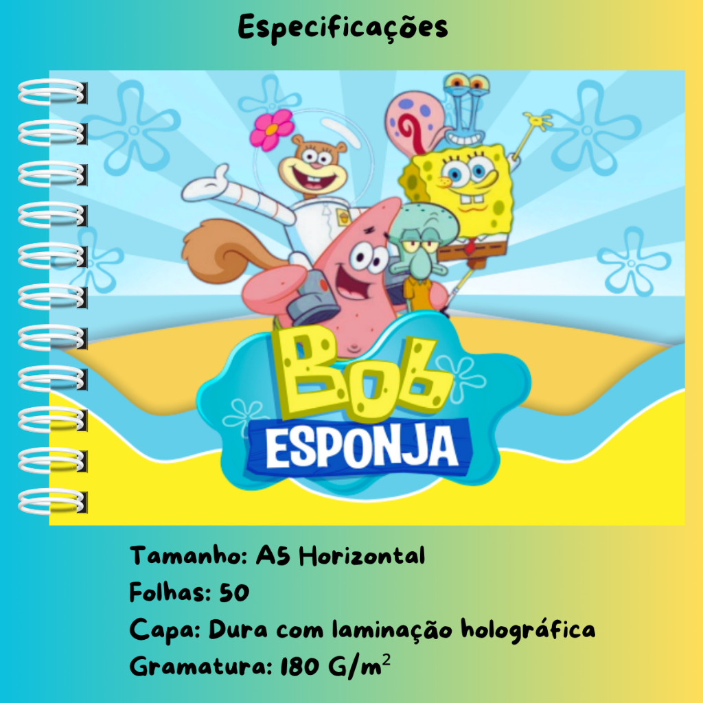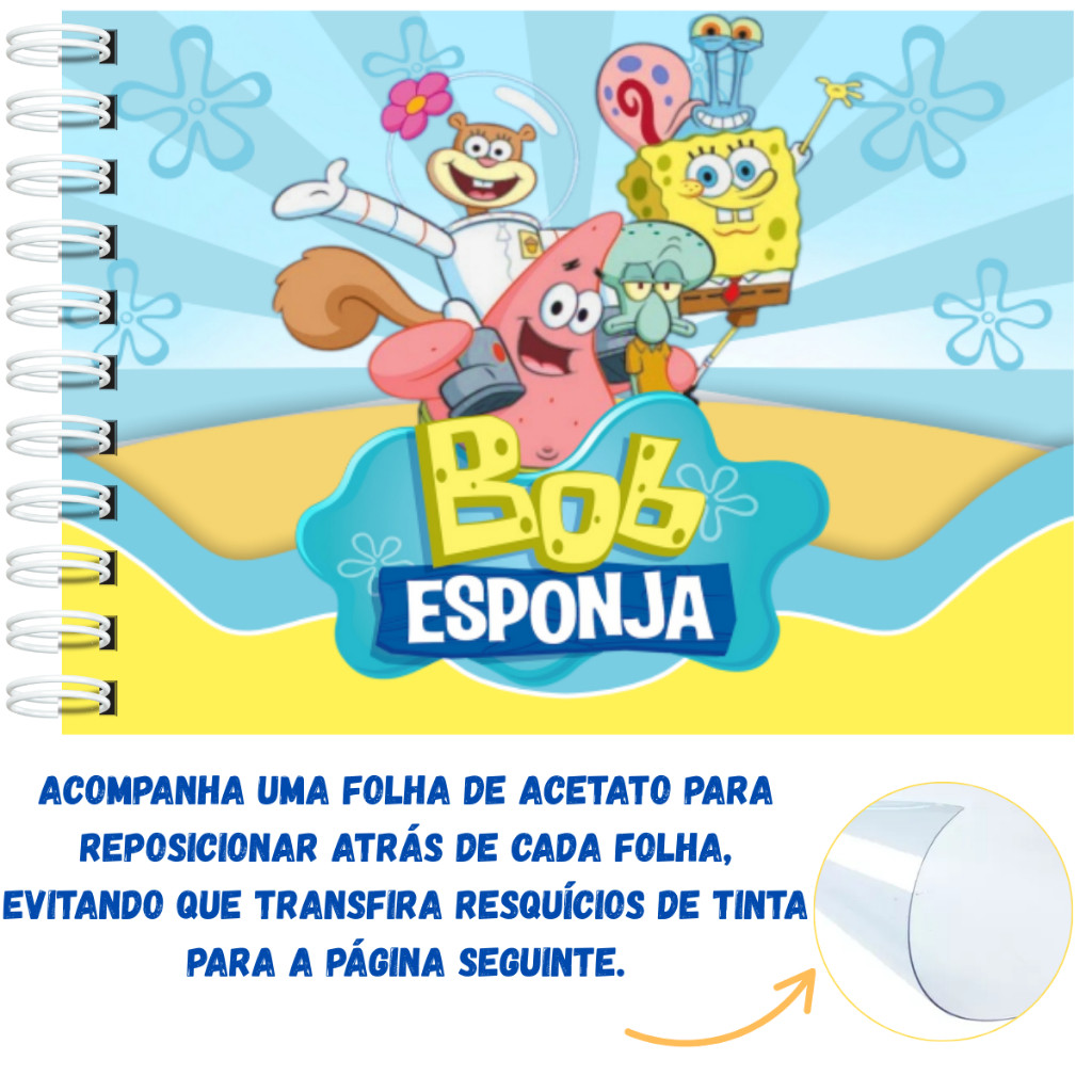 Livro de Colorir Bob Esponja Capa Dura A5 50 Páginas Laminação Holográfica Folhas 180Grm