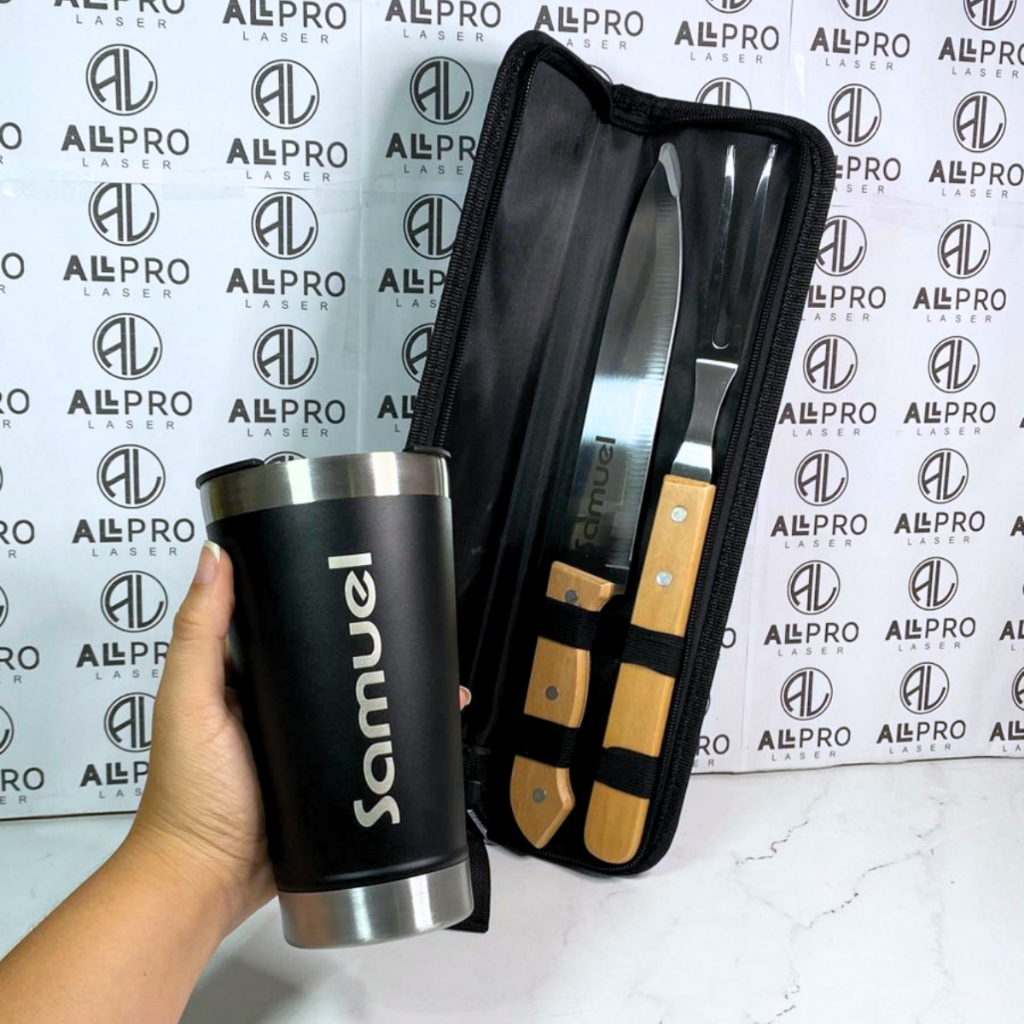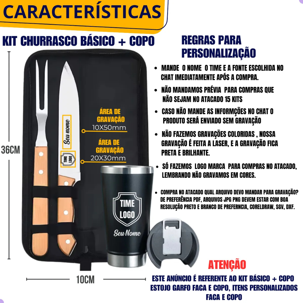Kit Churrasco 2 Peças ou Kit Churrasco 2 Peças + Copo Térmico Personalizado Logo Time Nome Empresa