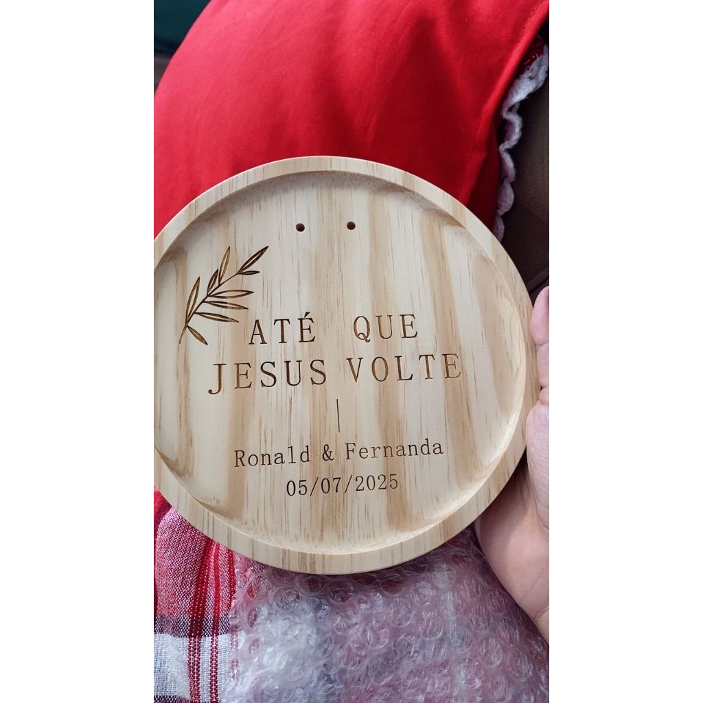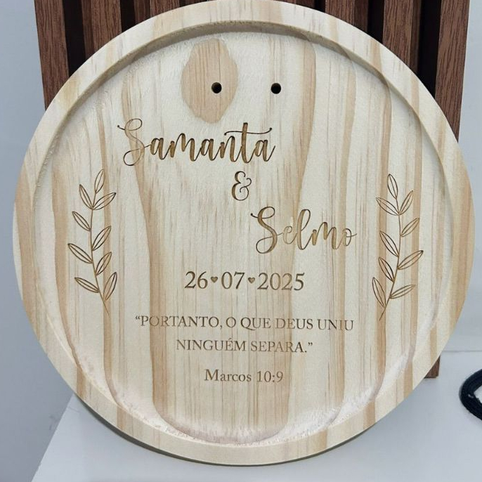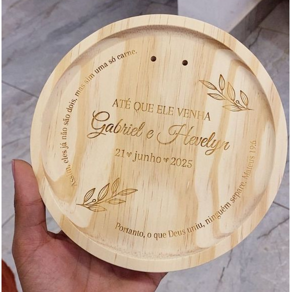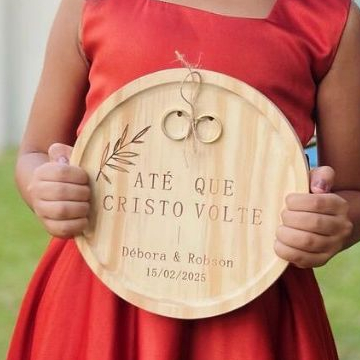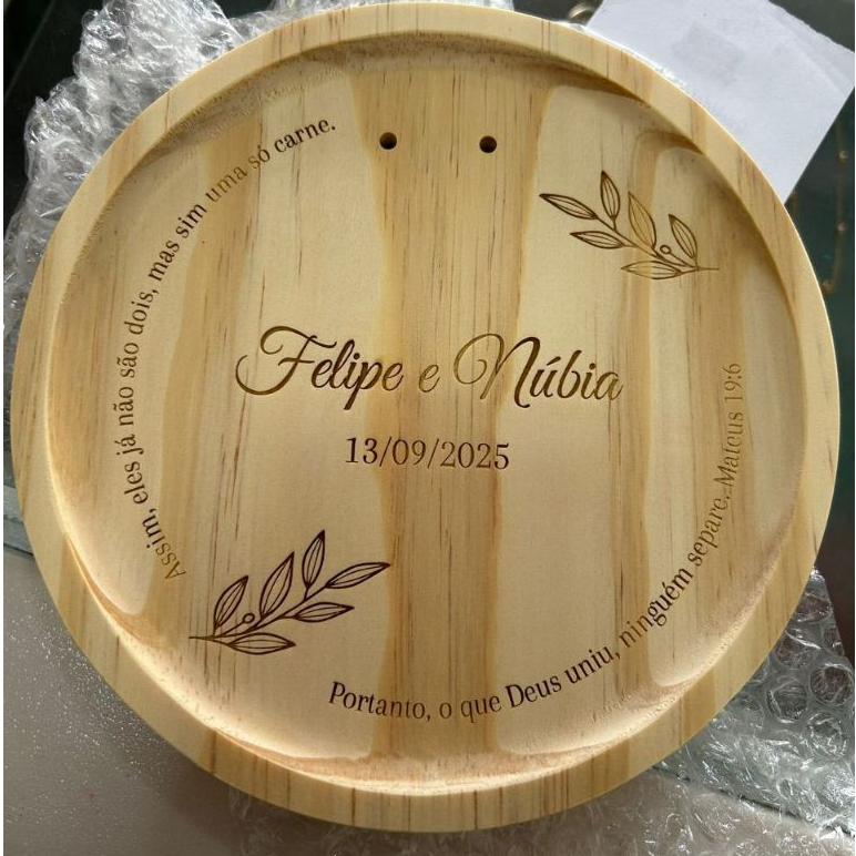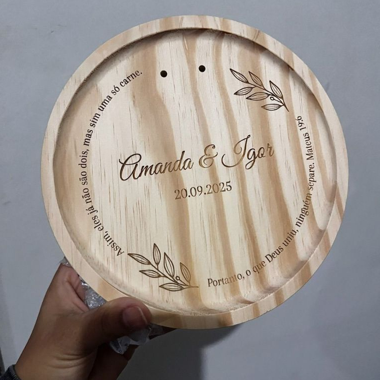 Porta Aliança Casamento em Madeira Pinus | Personalizado | 18cm