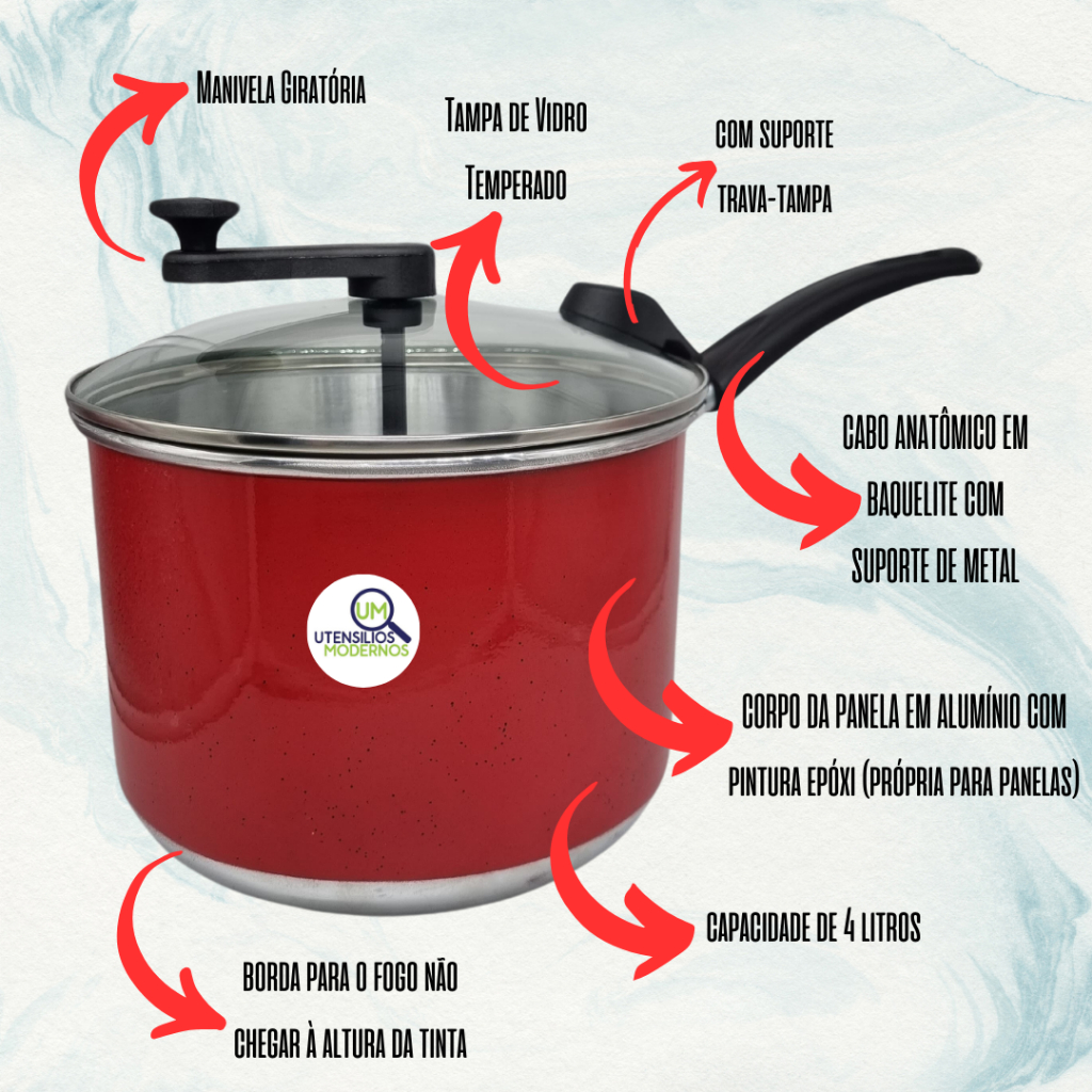Pipoquiera nº20 4 Litros Panela Pipoqueira Aluminio Vermelho Aluminio Amj