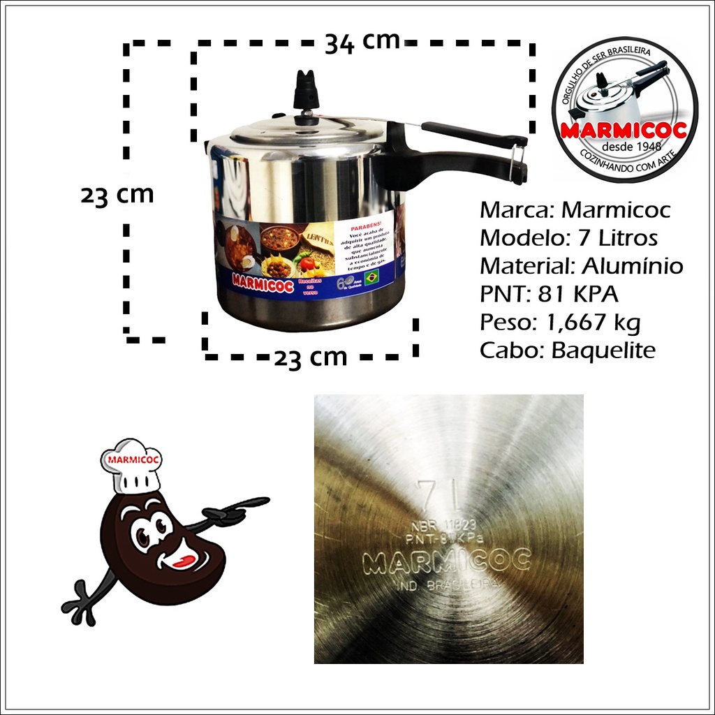 Panela de Pressão Marmicoc Capacidade 7 litros - Alumínio Polido.