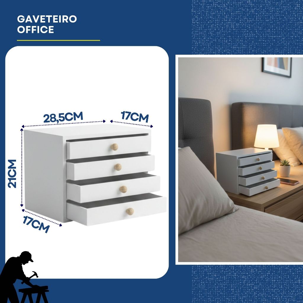 Gaveteiro Organizador Escritório Quarto Mdf Multiuso Branco
