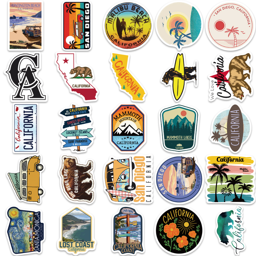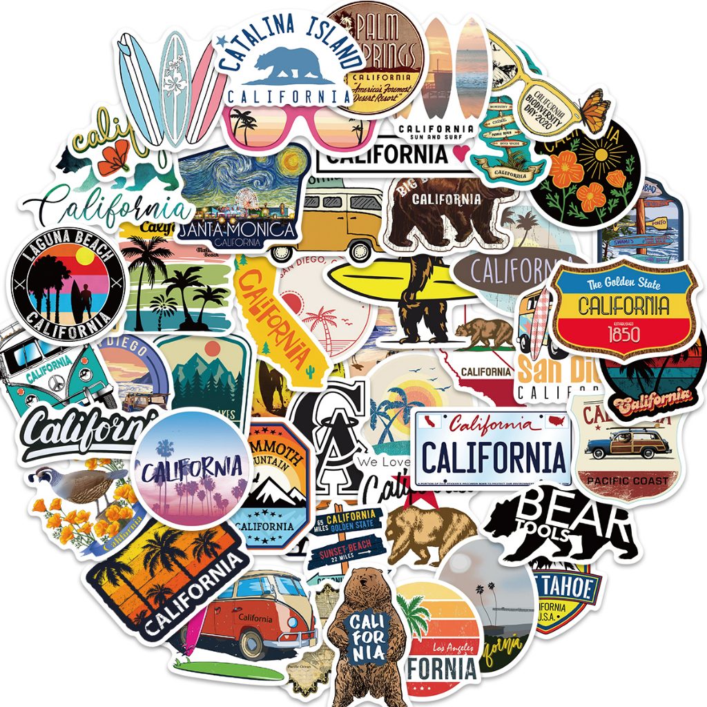 50pcs Autocolantes Do Estado Da Califórnia De Cartoon Coreano Graffiti Skateboard À Prova D'água Carro Para Laptop
