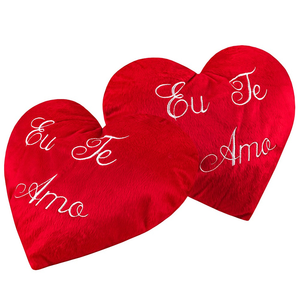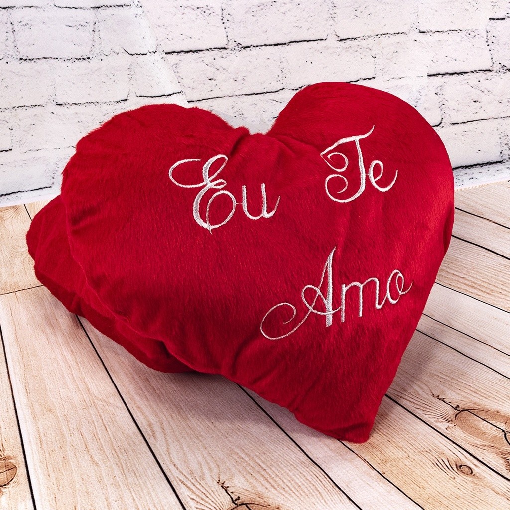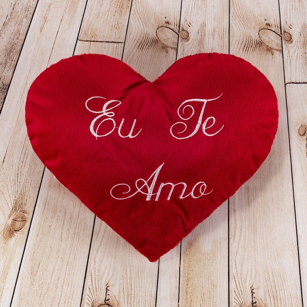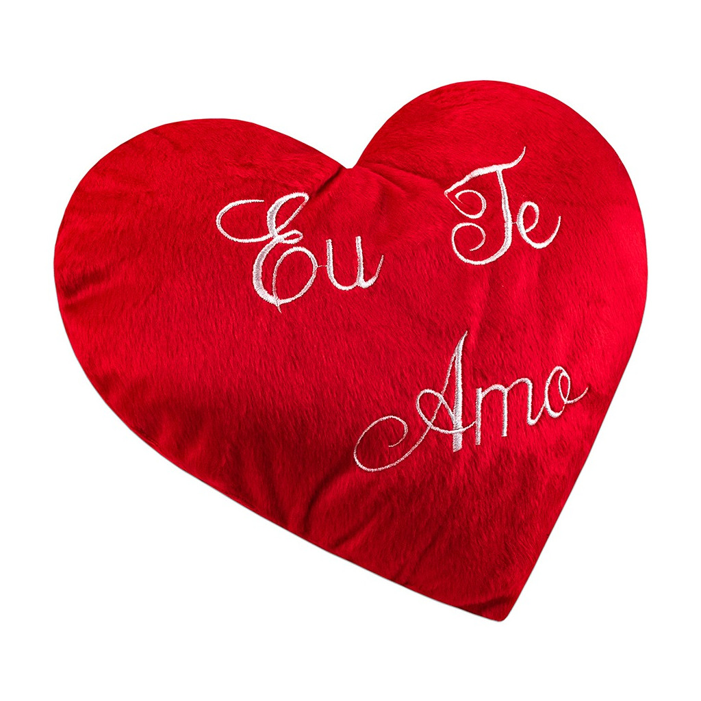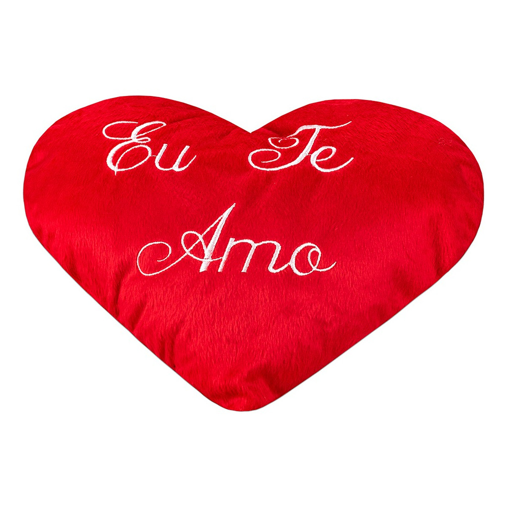 Almofada Coração de Pelúcia Bordado Eu te Amo 35x25cm Dia dos Namorados Decoração