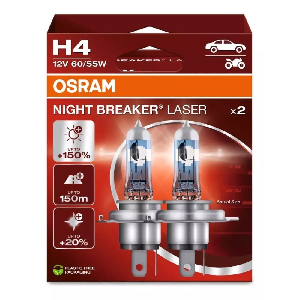 Par Lampada Farol Osram Night breaker Laser H4 55W 4000k