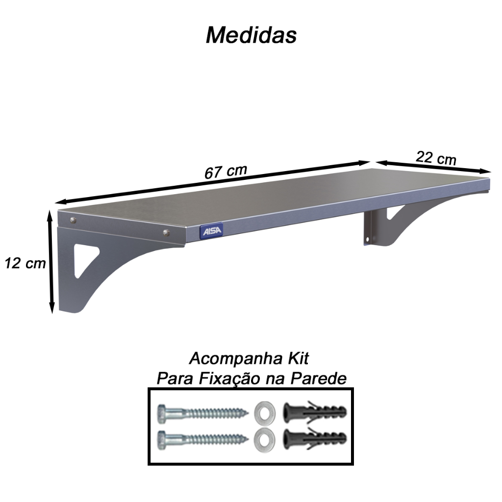 Prateleira Aérea Aço Inox 22cm X 67cm Restaurante Lanchonete