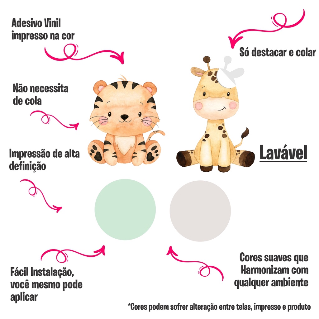 Adesivo Decorativo Animais Safari Aquarela para parede Decoração Quarto