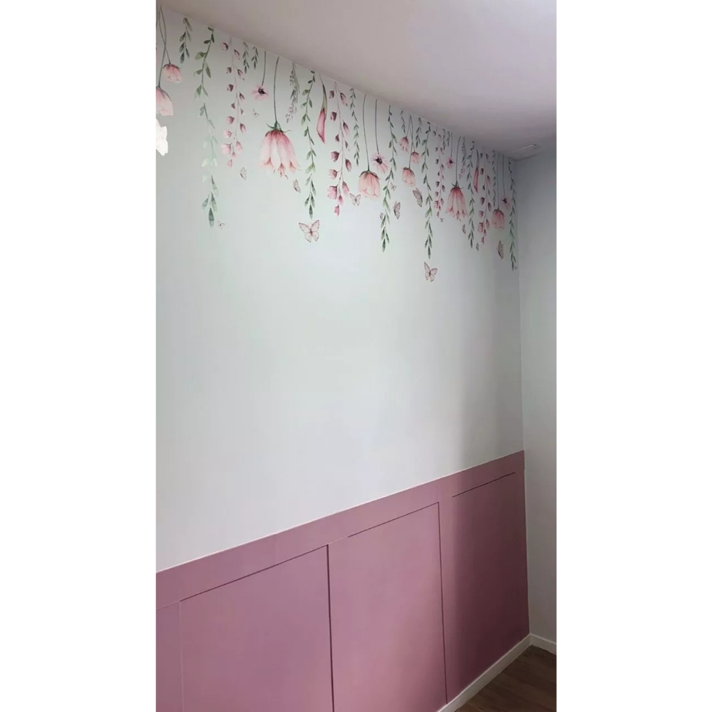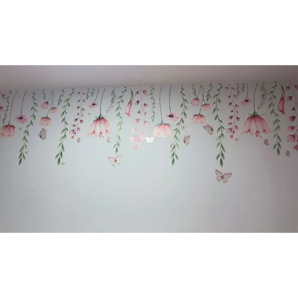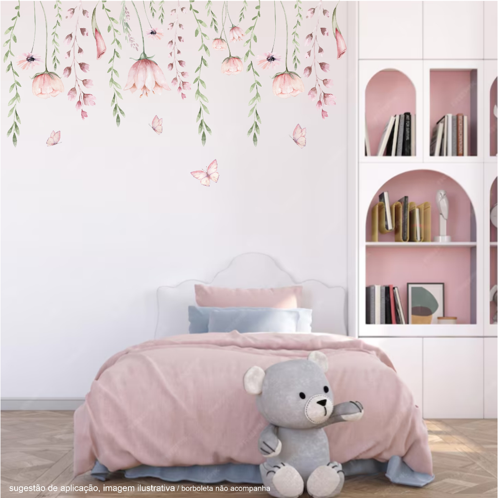 Adesivo Jardim Encantado com Flores e Raminhos Borboleta infantil Quarto de Menina Fácil de Aplicar