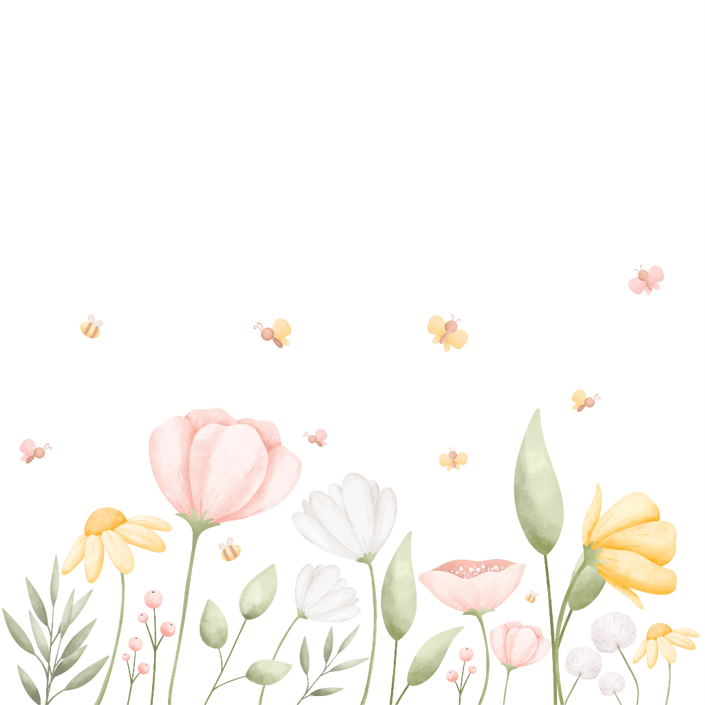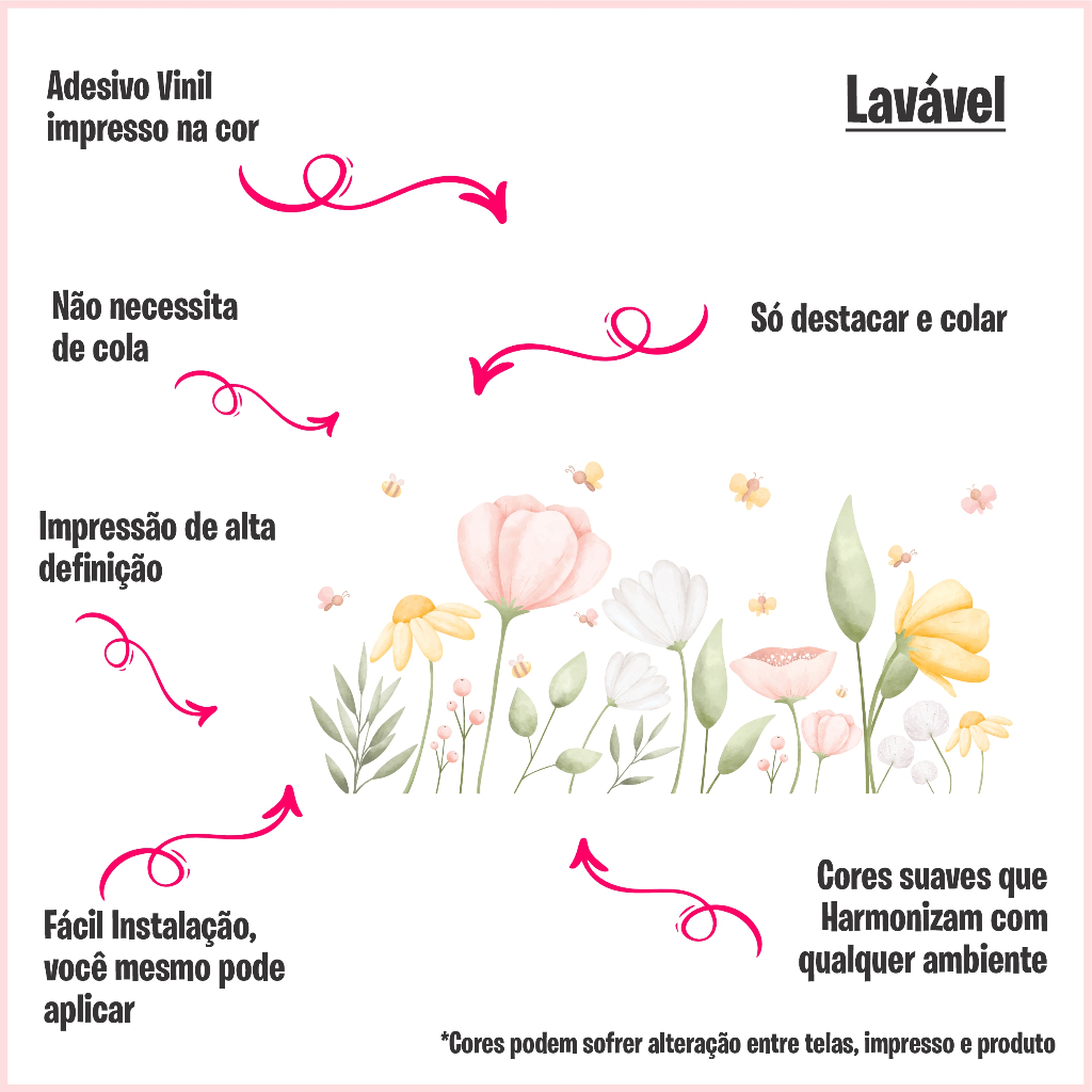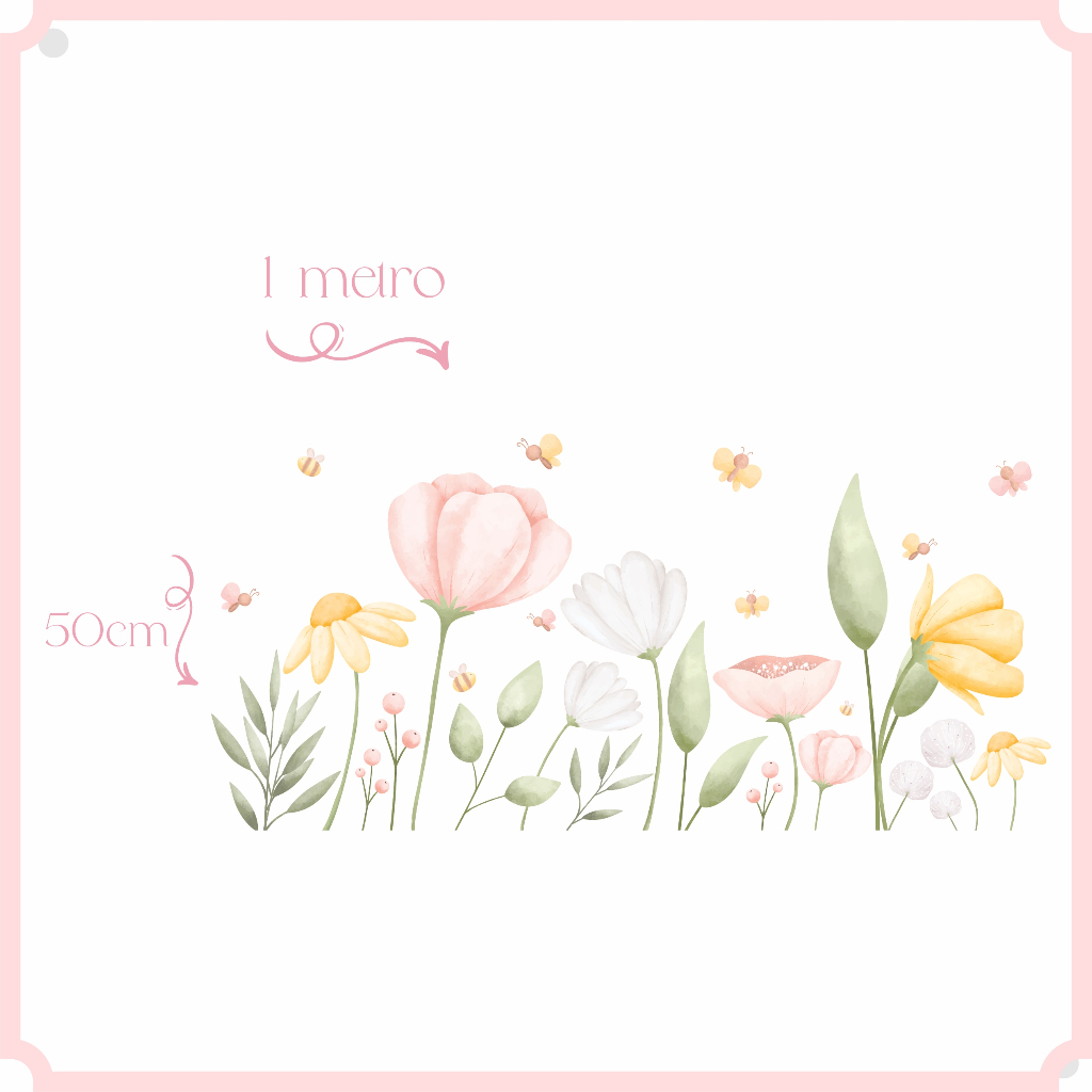 Adesivo Jardim Encantado com Abelhinhas Flores e Raminhos Aquarela de Parede Decorativo sem Fundo Fácil Aplicação