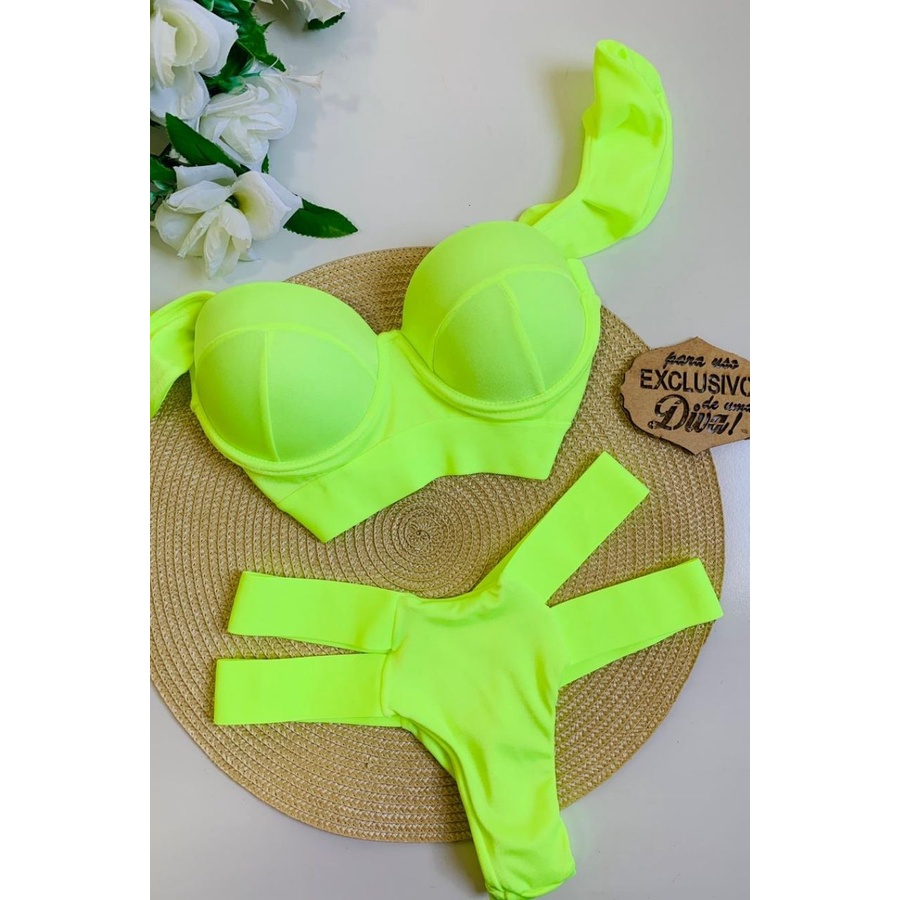 Biquíni Feminino Elástico Neon Com Bojo e Aro Alças Removíveis