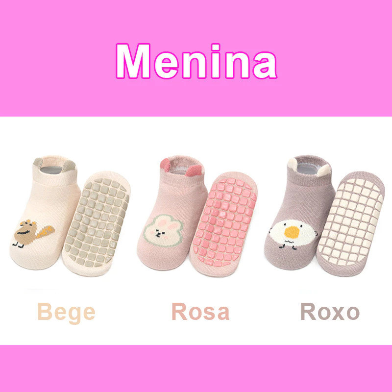 3 Pares Meia Infantil Soquete Antiderrapante Menina Menino Criança Presente