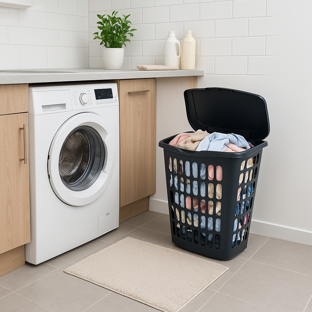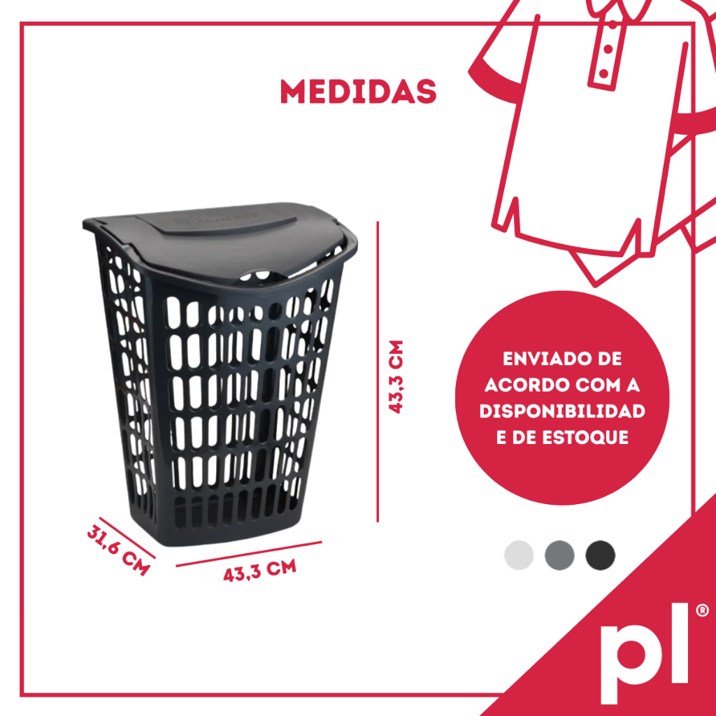 Kit 2 Cestos de Roupas Telado Grande Com Tampa 40L Lavanderia Banheiro Em Plástico Resistente