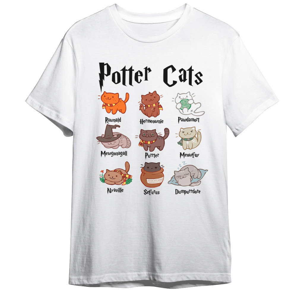 Camiseta Camisa Basica Potter Cats I Love Cat Fofo Hogwarts Bruxos HP Harry Poter Geek Unissex 100% algodão Envio Rápido