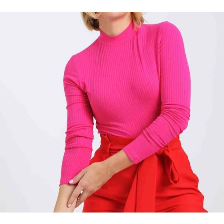 Blusa feminina canelada justa gola alta manga longa moda