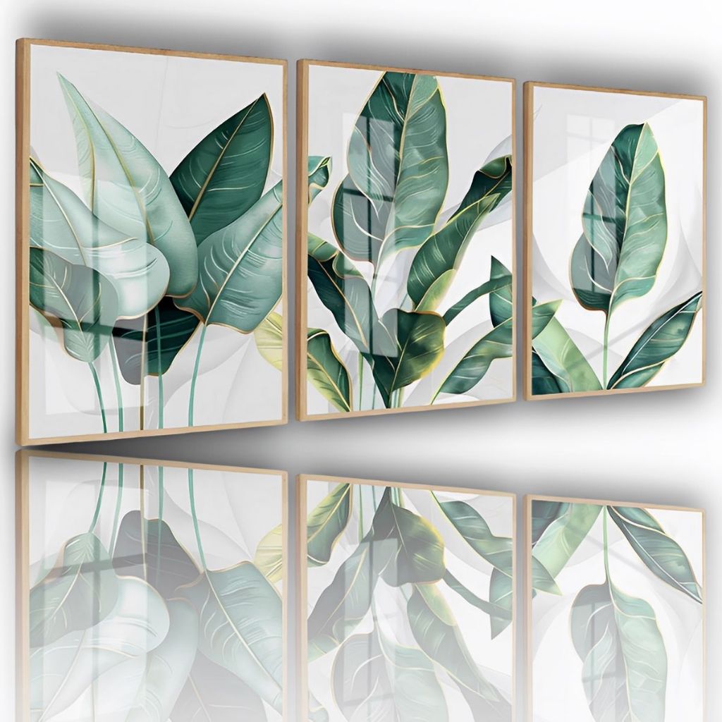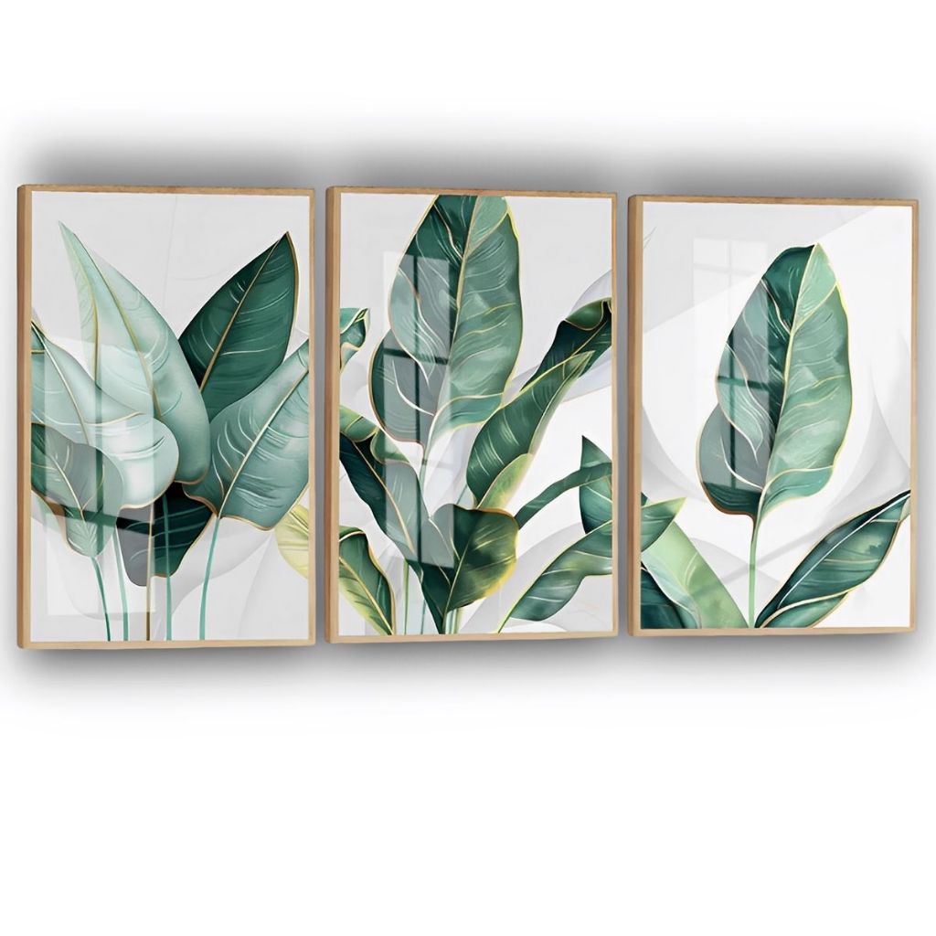 Quadro Decorativo Folhagem Folhas Verdes Trio Costela Hall
