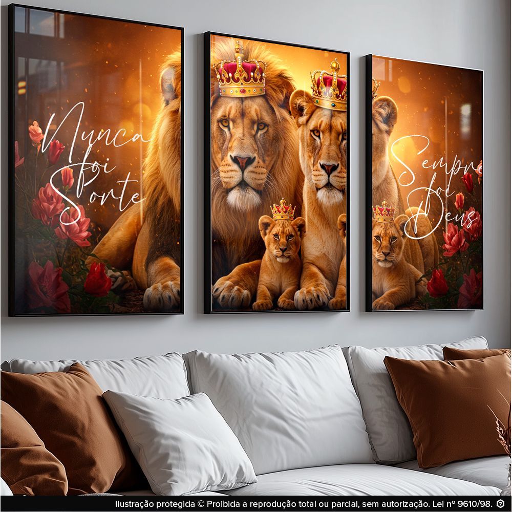 Quadro Decorativo Leão Leoa Família Reino Da Fé Herança e Coragem Força e Propósito