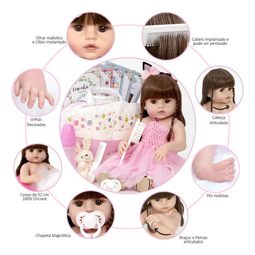 Boneca Bebê Reborn Silicone Menina Bailarina 22 Acessórios