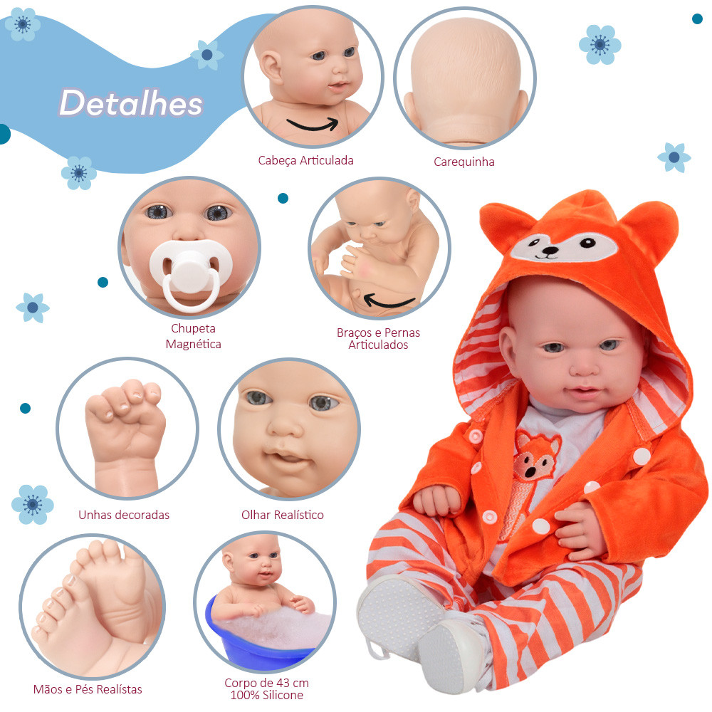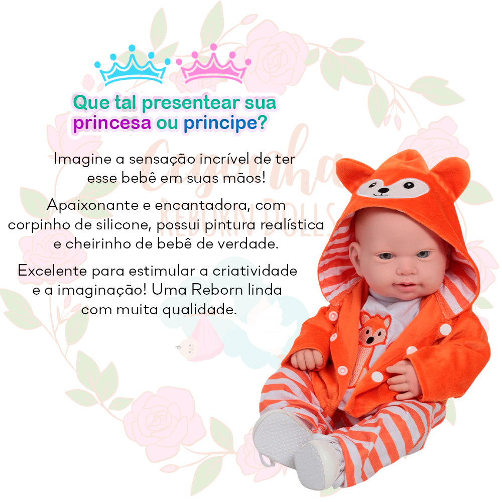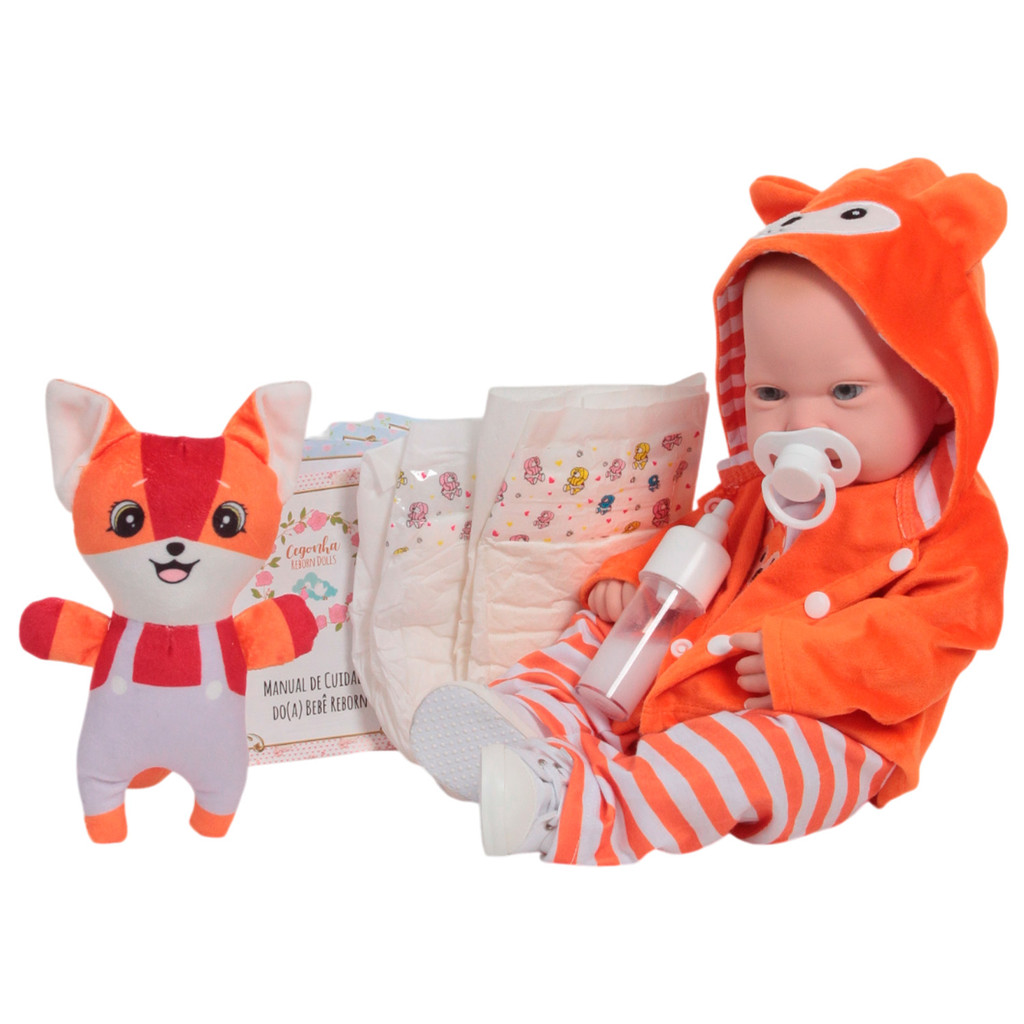 Boneco Bebê Reborn Menino Realista 43cm Raposinha Pelúcia