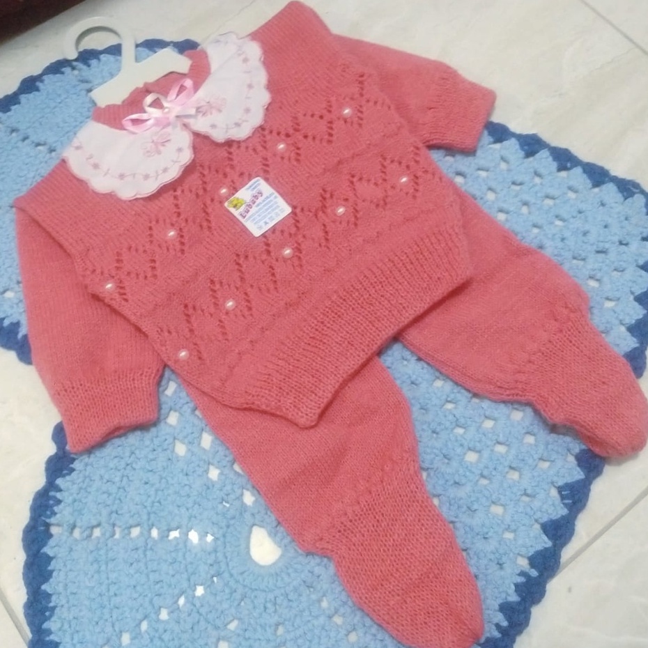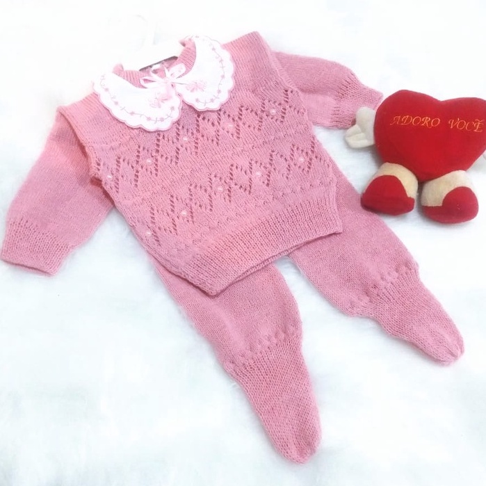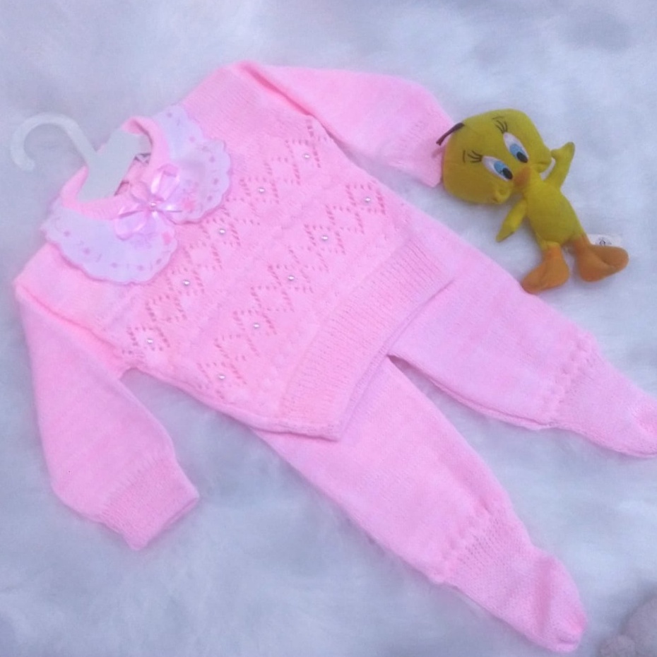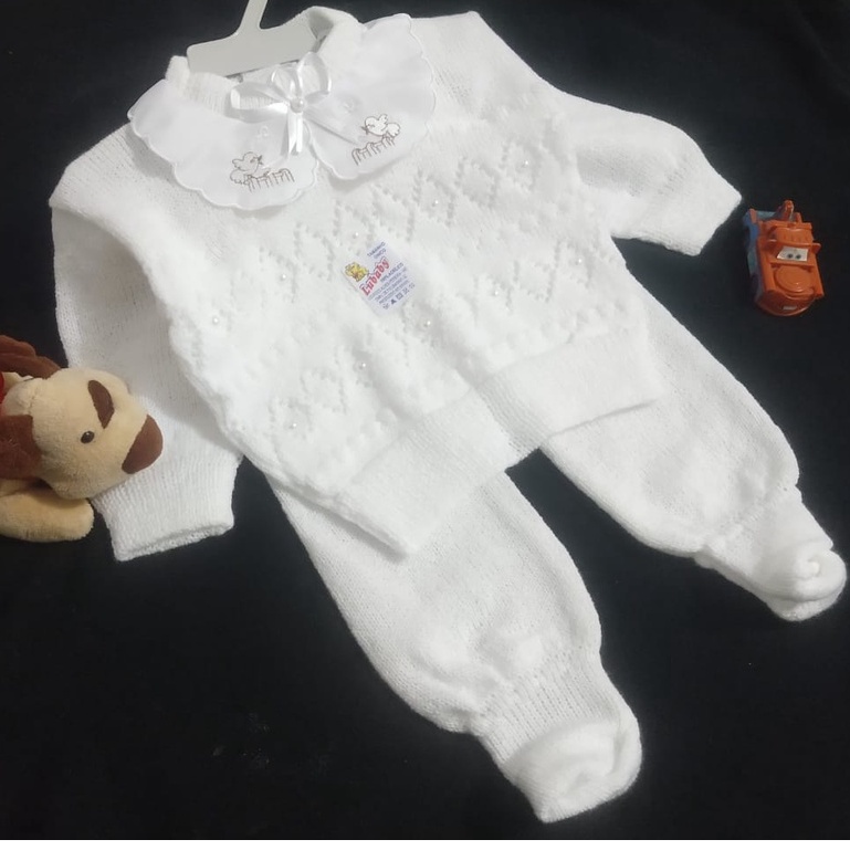 Conjuntos De Agasalho Para Bebê Blusa E Calça De Lã Sem Pezinho Com Linda Gola De Renda Para eles e elas .