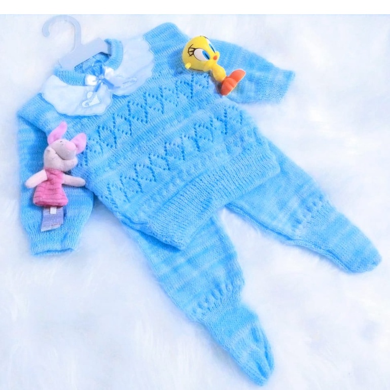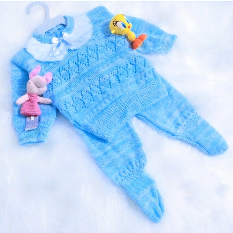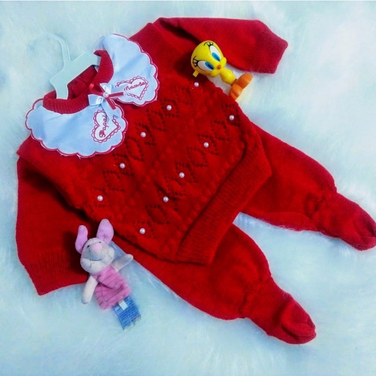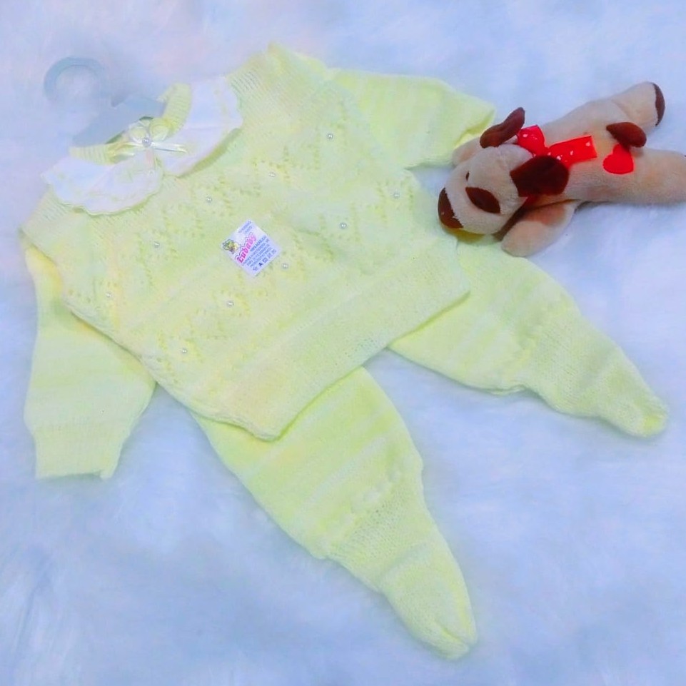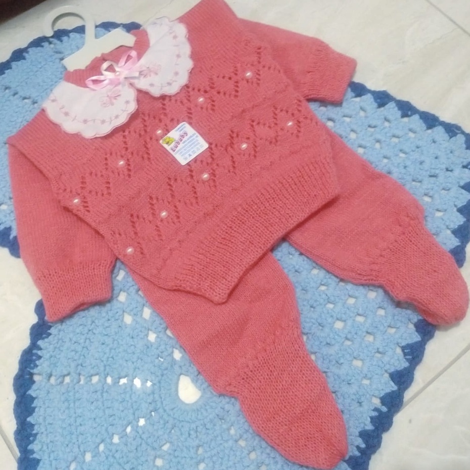 Conjuntos De Agasalho Para Bebê Blusa E Calça De Lã Sem Pezinho Com Linda Gola De Renda Para eles e elas .