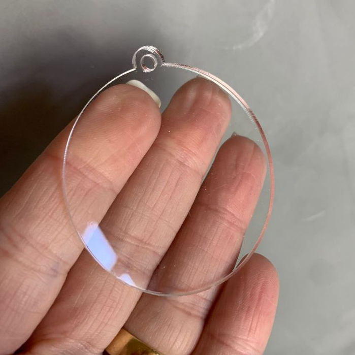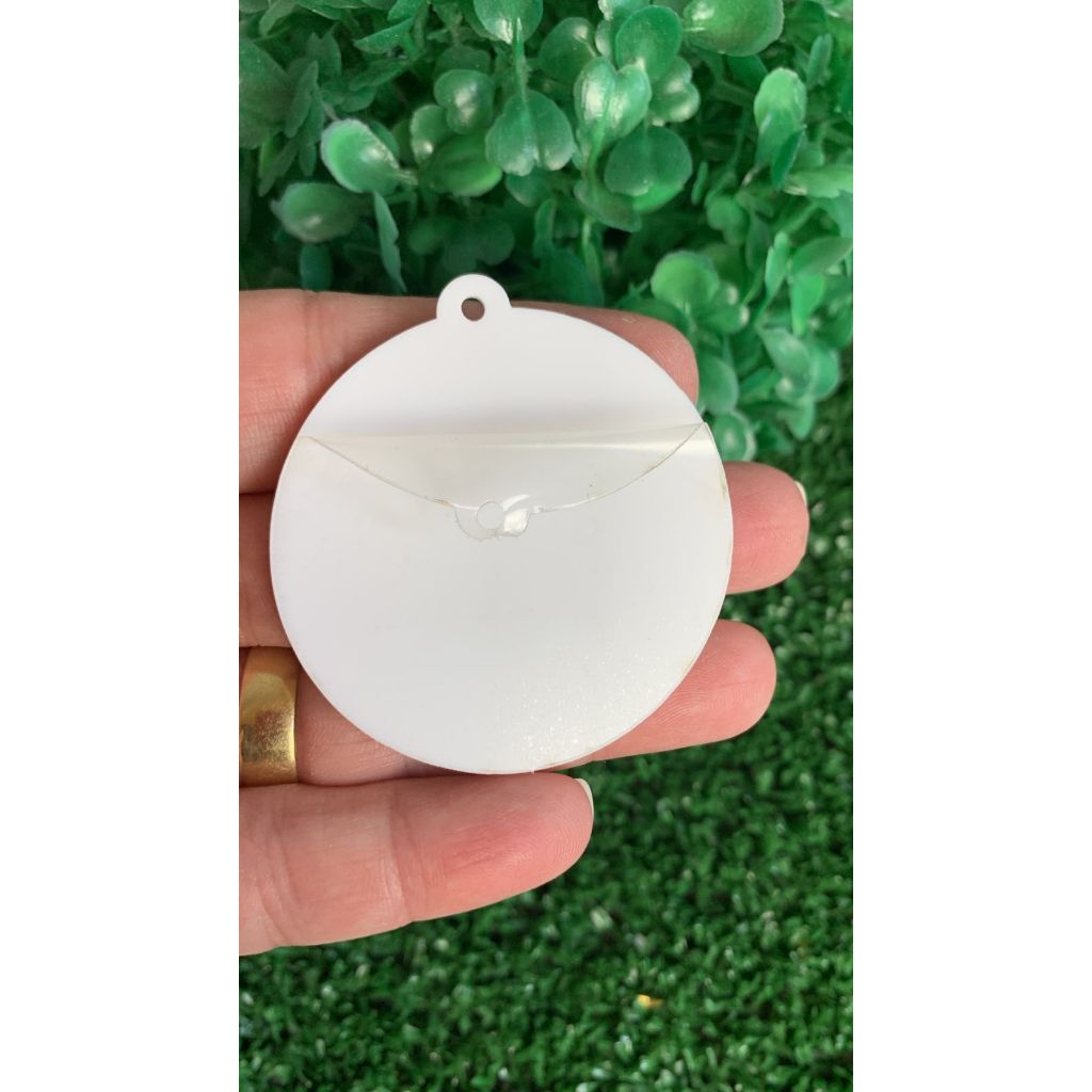 Chaveiro Acrílico Cristal e Branco Redondo 5cm Personalizável Lembrancinha 2mm