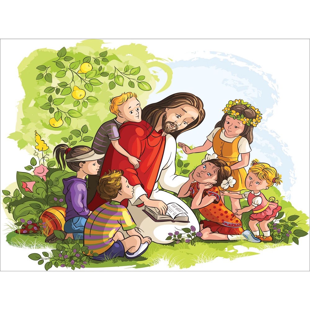Painel Jesus ensinado as Criancinhas lona Fosca C/Ilhós