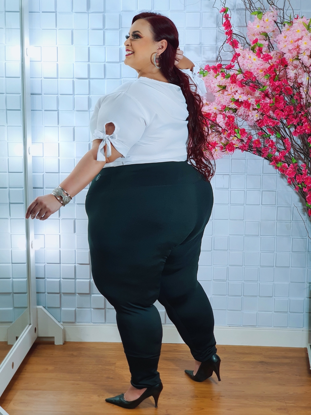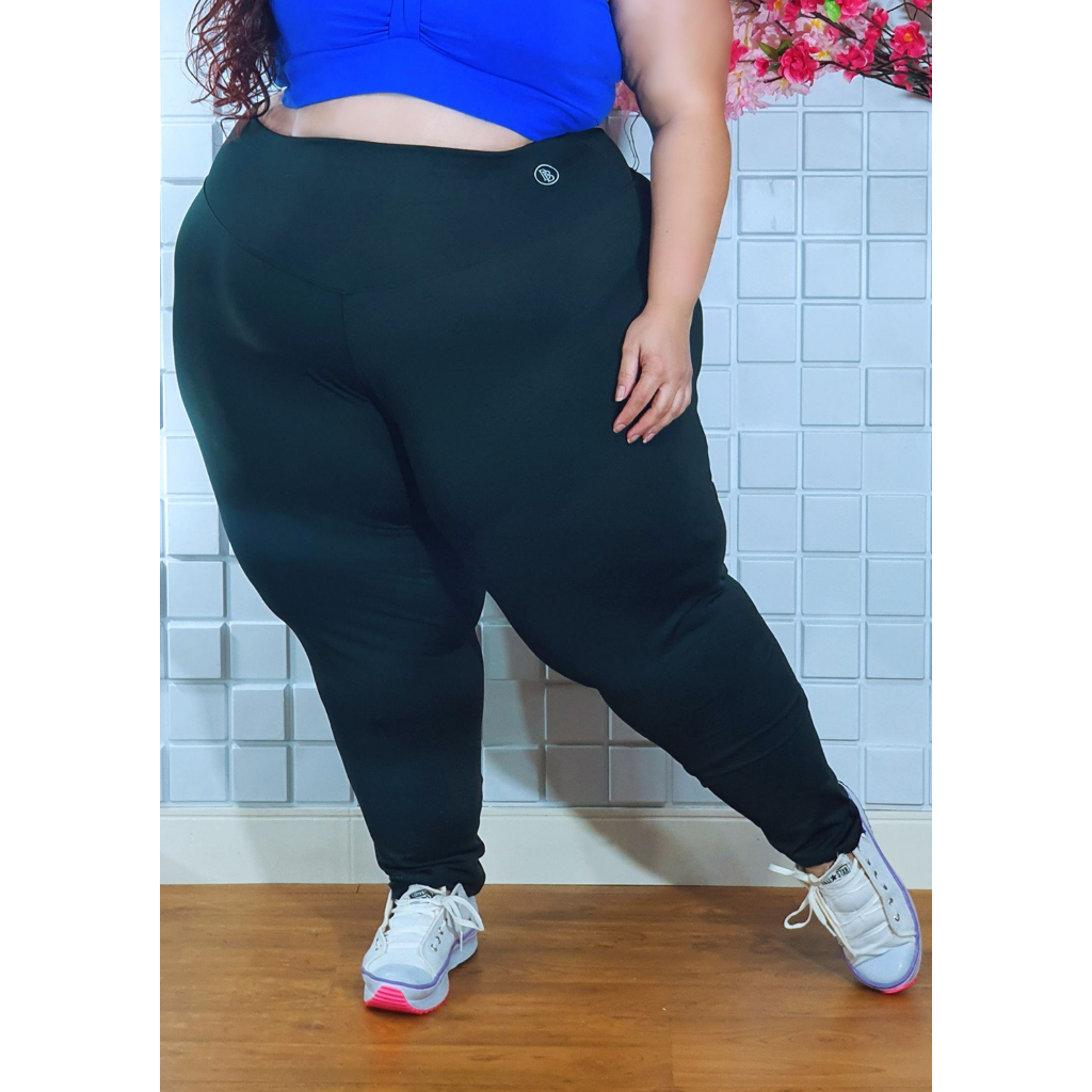Calça Plus Size Legging Modeladora Fitness Suplex Encorpado Cós Alta Levanta Bumbum