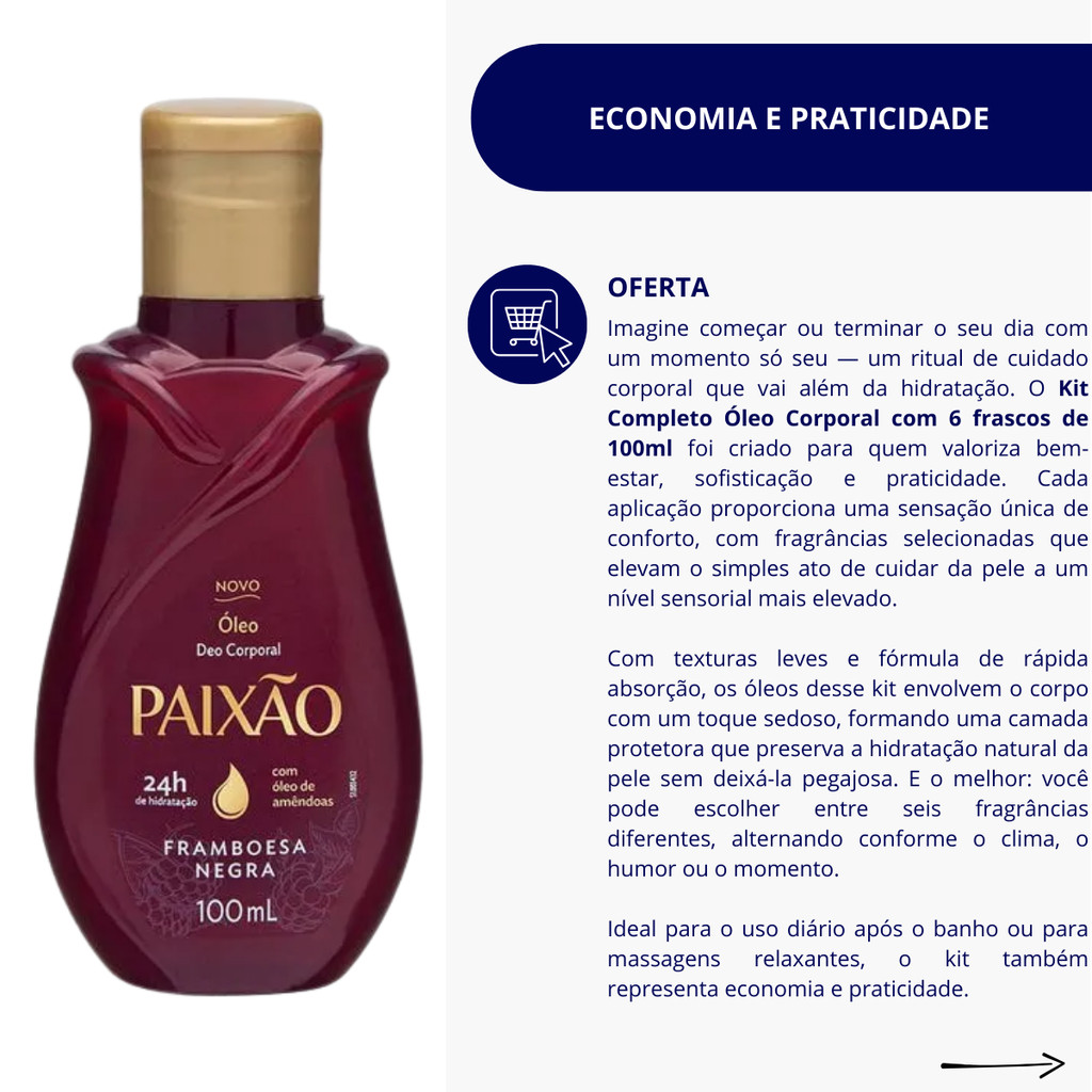 Kit Completo Com Todas as Fragâncias Óleo Corporal 6x 100ml